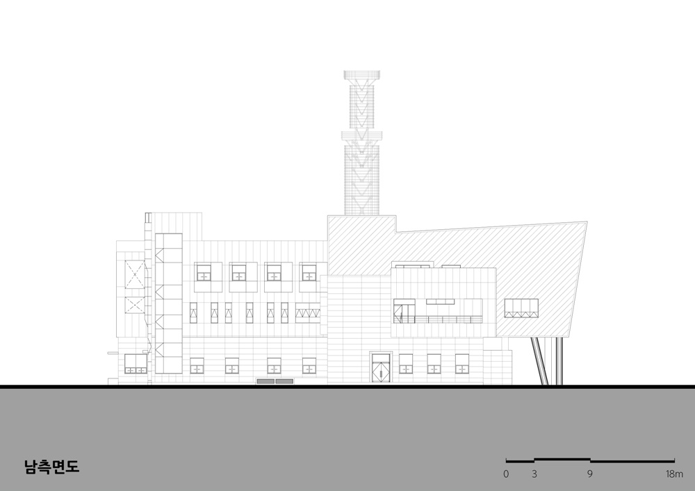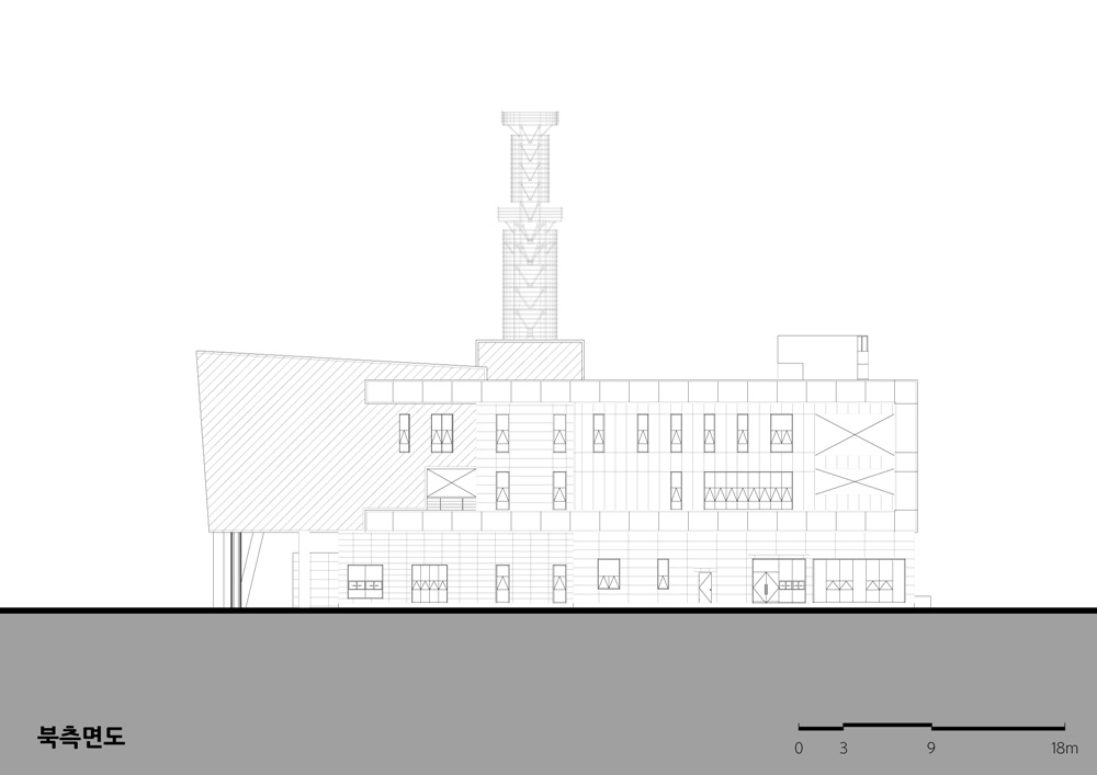 Also, I tried to give priority to the essential function of the fire station by intimacy rather than overwhelming in the form of design. The window looking at Cheongyang-gun which is an image of a guardian of Cheongyang, and the curve that gives horizontal stability and friendliness are the main theme of the facade design. Communication tower was designed to express the image of Chilgapsan and the symbolic image to be recognized from a long distance and for the harmony with local community but later it was turned out to be a general type of tower during the design process, which is still somewhat regrettable.