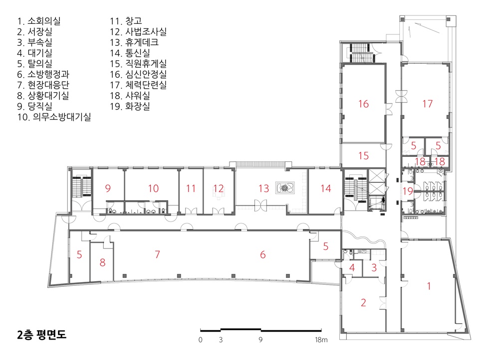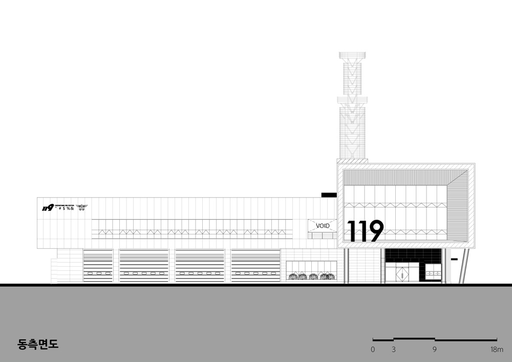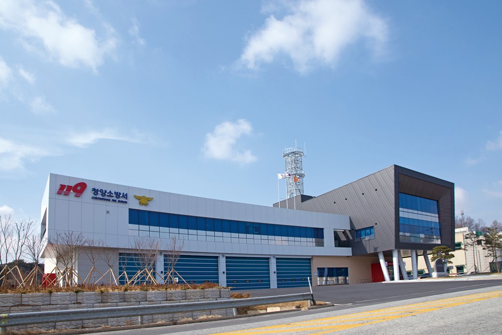 Cheongyang Fire Station which was a branch of Hongsung Fire Station was newly promoted and planned to create a landmark of Cheongyang-gun by securing the accessibility and safety of the residents while emphasizing the responsibility of the safety, emergency and rescue based on the symbol of 119.