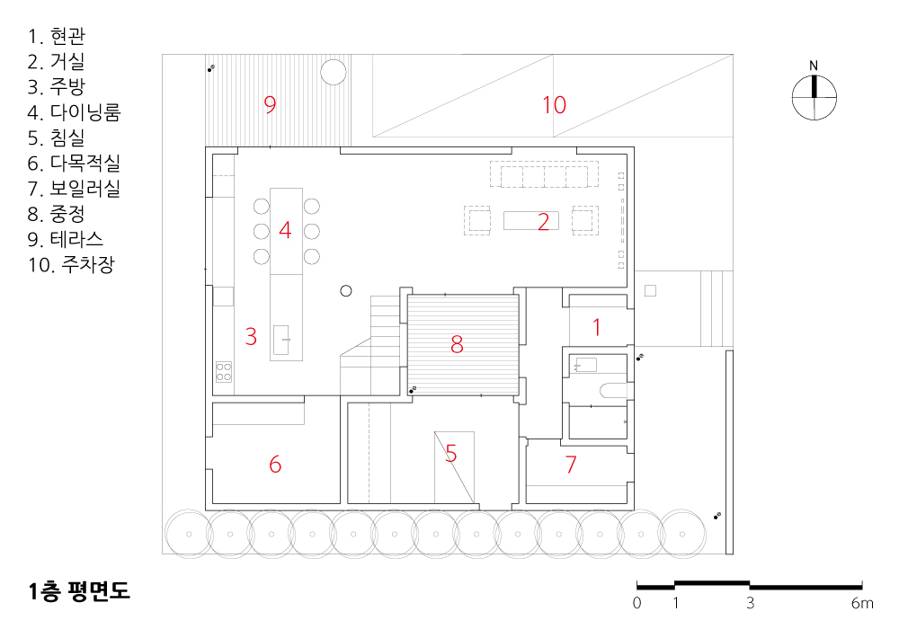 중정이 건물의 중심이 되는 주택