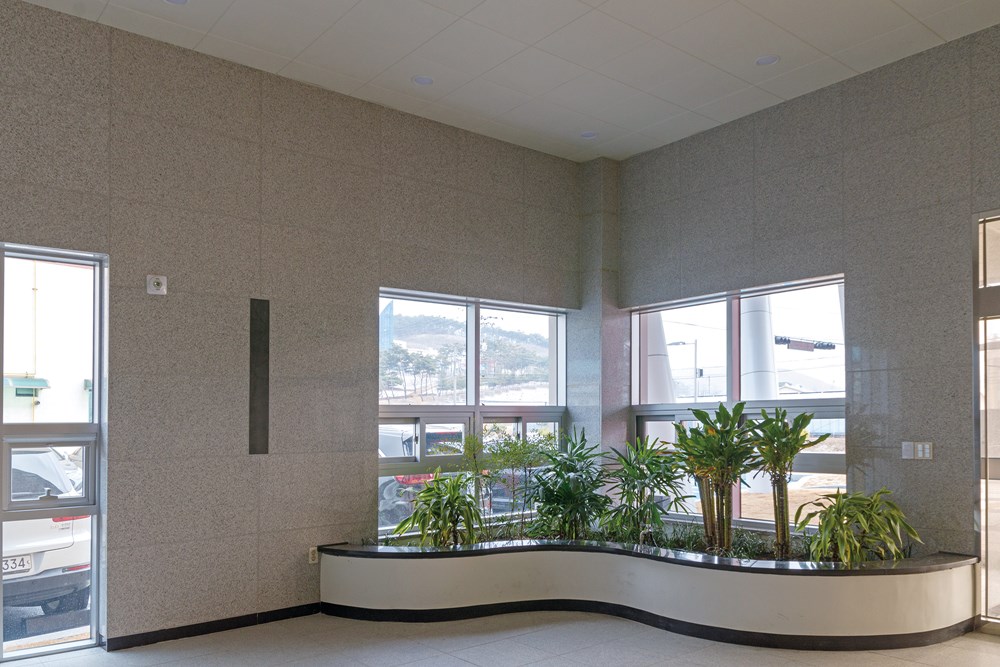 Also, I tried to give priority to the essential function of the fire station by intimacy rather than overwhelming in the form of design. The window looking at Cheongyang-gun which is an image of a guardian of Cheongyang, and the curve that gives horizontal stability and friendliness are the main theme of the facade design. Communication tower was designed to express the image of Chilgapsan and the symbolic image to be recognized from a long distance and for the harmony with local community but later it was turned out to be a general type of tower during the design process, which is still somewhat regrettable.