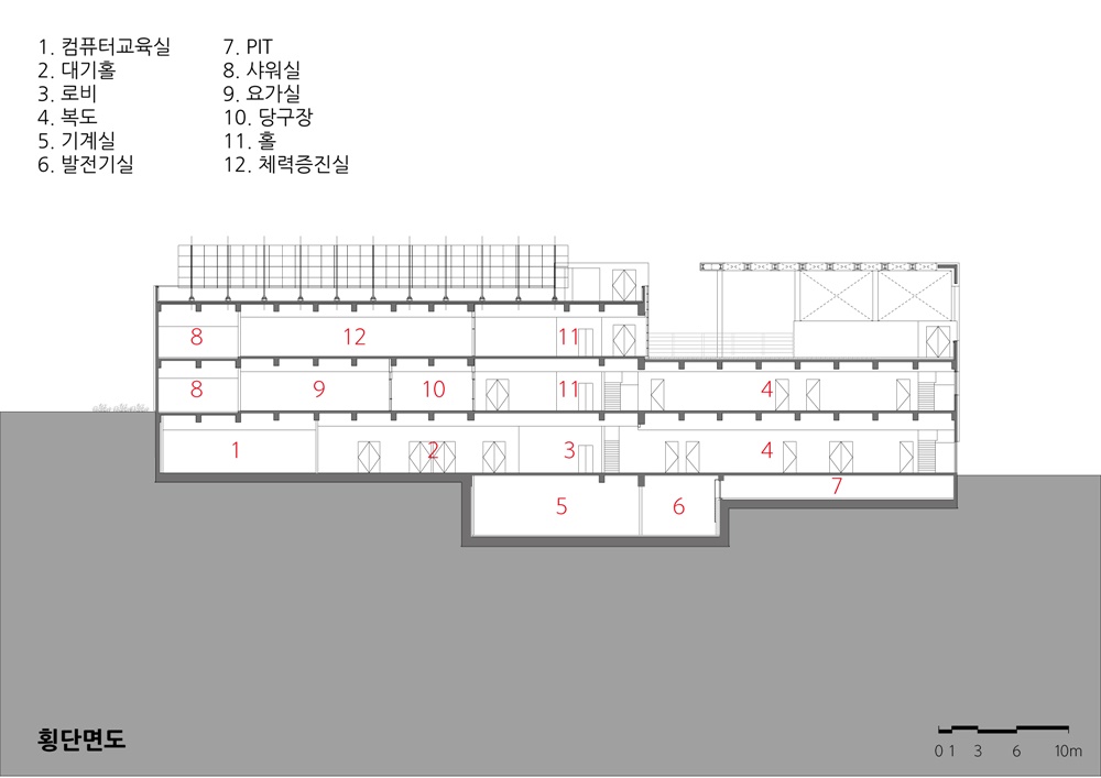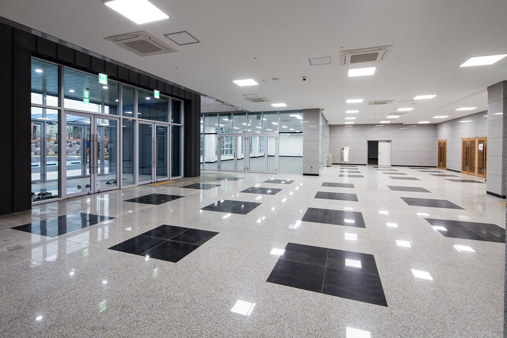 석문문화스포츠센터 설계자 | 이해운 KIRA _ (주)예감 건축사사무소 건축주 | 당진시 감리자 | 박명순 _ (주)바우플랜 종합건축사사무소 시공사 | 디엘종합건설(주) 설계팀 | 김종철, 이승엽, 신현숙 대지위치 | 충청남도 당진시 석문면 대호만로 1543 주요용도 | 문화 및 집회시설 대지면적 | 10,044㎡ 건축면적 | 1,586.02㎡ 연면적 | 3,600.53㎡ 건폐율 | 15.79% 용적률 | 35.85% 규모 | 지하 1층, 지상 3층 구조 | 철근콘크리트조 외부마감재 | 화강석, 세라믹 패널 내부마감재 | 강화마루, 카펫타일, 화강석, 수성페인트, 패브릭 설계기간 | 2015. 04 ~ 2015. 10 공사기간 | 2015. 11 ~ 2017. 09 사진 | 채수옥 구조분야 : SH구조엔지니어링(주) 기계설비분야 : 서해기술단(주) 전기분야 : 서해기술단(주) 소방분야 : 서해기술단(주) |