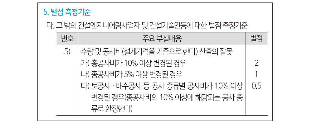 그중 가장 어이없는 기준이 바로 ‘공공건축 설계공모’를 통해 당선된 건축사에게 수량 및 공사비가 잘못됐다고 벌점을 주는 규정이다. <건설기술진흥법 시행령 [별표 8] 제5호 다목 5) 가) · 나) · 다) >