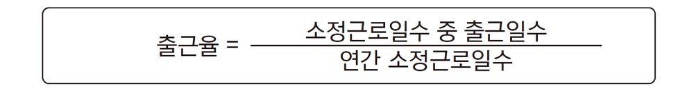 그 외에도 근로자가 업무상 부상 또는 질병으로 휴업한 기간, 출산전후휴가 및 유사산휴가(「근로기준법」 제60조제6항) 및 예비군 훈련기간, 민방위훈련 또는 동원기간, 공민권 행사를 위한 휴무일, 연차유급휴가, 생리휴가 등은 출근한 것으로 산정해야 한다.