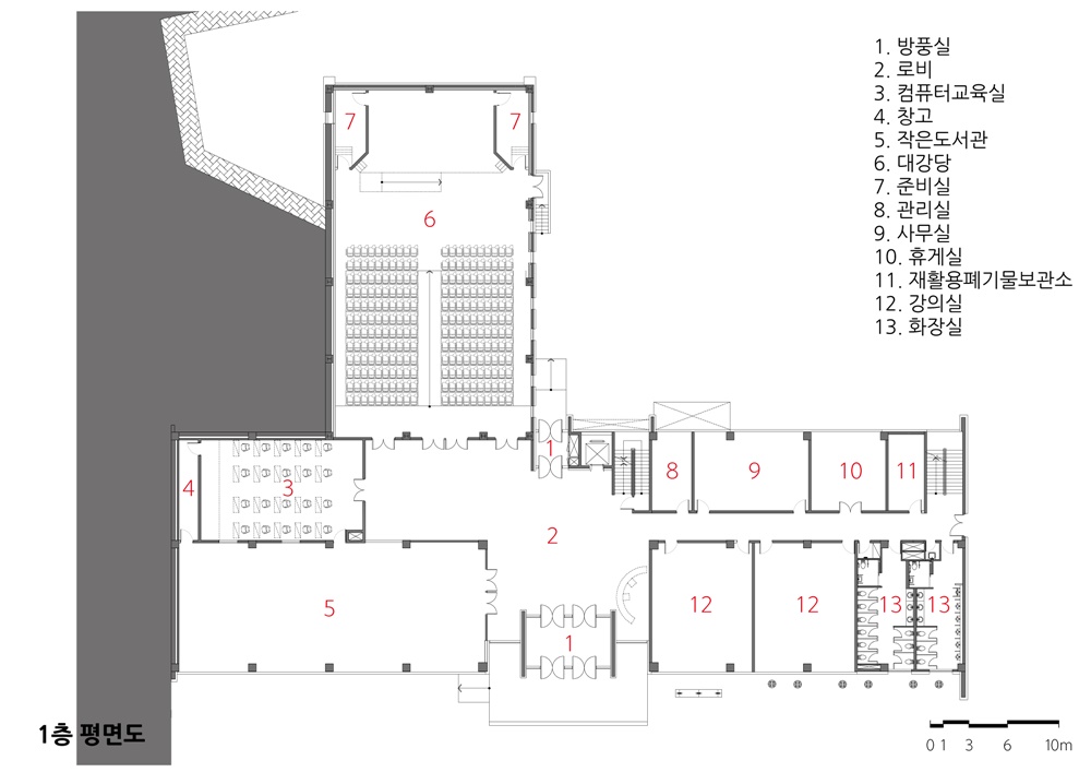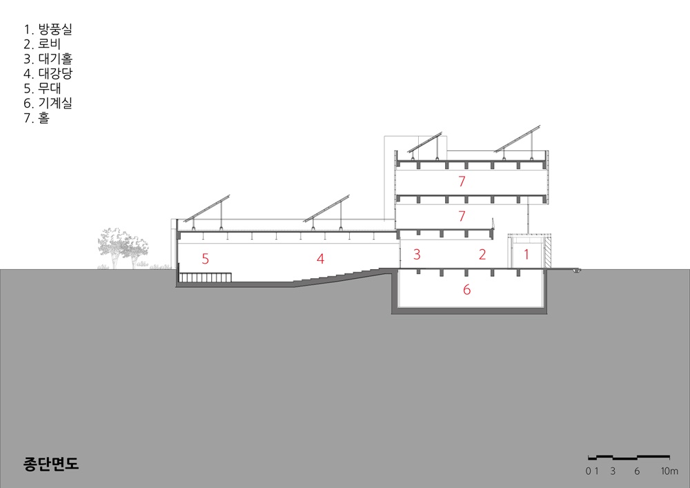 Suk-Mun Culture & Sports Center Architect | Lee, Haiwoon _ YehGam Architects Group Co.,Ltd Client | Dang Jin city Supervisor | Park, Myungsoon _ Ba-u plan General Architects Office Construction | DL Construction Co., Ltd. Project team | Kim, Jongcheol / Lee, Seungyeop / Shin, Hyeonsuk Location | 1543, Daehoman-ro, Seongmun-myeon, Dangjin-si, Chungcheongnam-do, Korea Program | Culture and assembly facilities Site area | 10,044㎡ Building area | 1,586.02㎡ Gross floor area | 3,600.53㎡ Building to land ratio | 15.79% Floor area ratio | 35.85% Building scope | B1F - 3F Structure | RC Exterior finishing | Granite stone, Ceramic panel Interior finishing | Fortified floor, Carpet tiles, Granite, Water paint, Fabric Design period | Apr. 2015 ~ Oct. 2015 Construction period | Nov. 2015 ~ Sep. 2017 Photograph | Chae, Suok Structural engineer | SH Structural Engineering Mechanical engineer | SeoHae Technical group Co,.Ltd Electrical engineer | SeoHae Technical group Co,.Ltd Fire engineer | SeoHae Technical group Co,.Ltd |