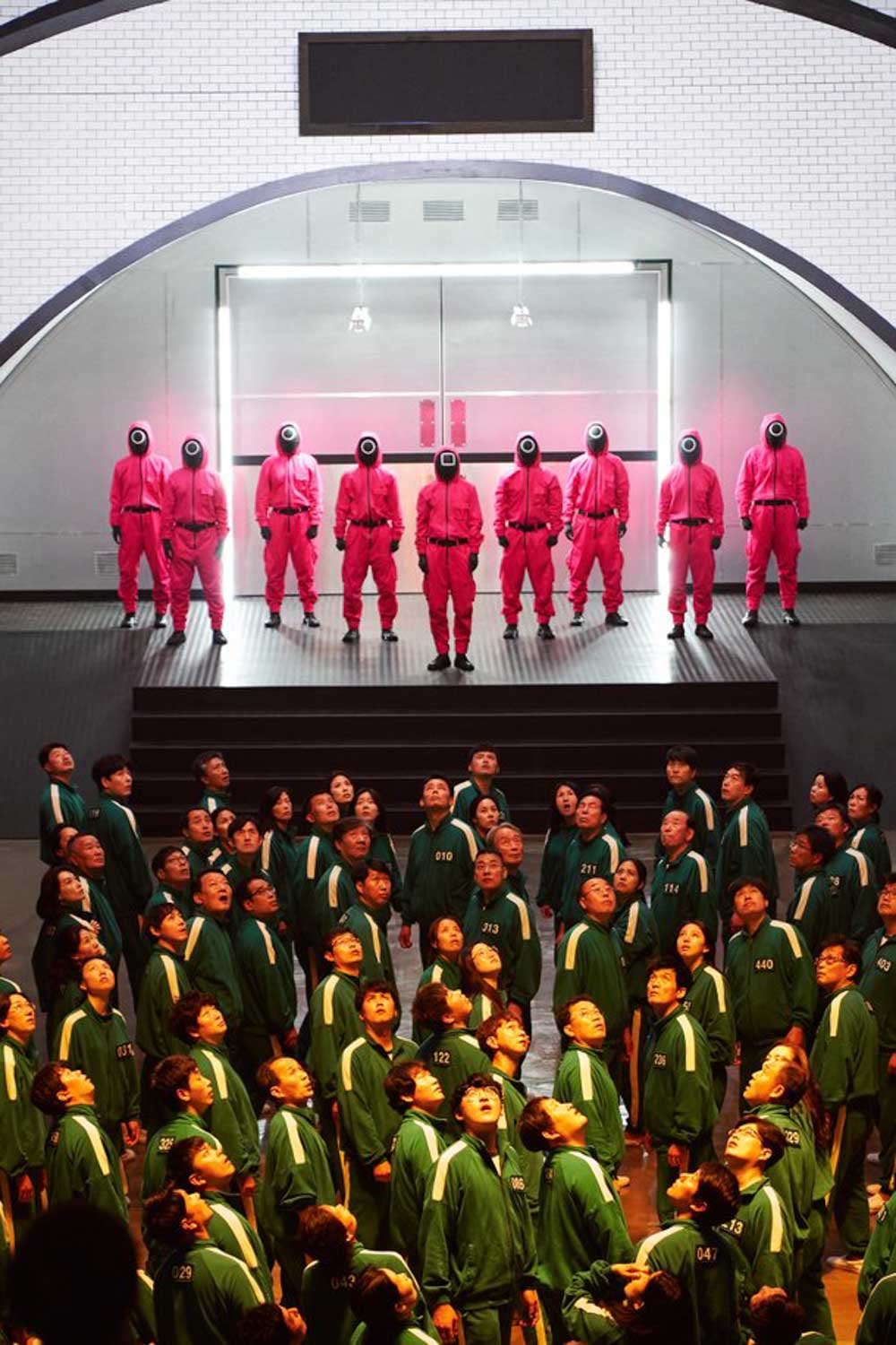 <오징어 게임>의 살벌한 메타포는 게임 참여자들과 진행자, 보조요원들의 신분에서 드러난다. 게임 참여자들은 우리 사회 최고의 학벌이라는 서울대부터 공업고등학교 출신, 그리고 조폭과 의사 등 모든 사회적 출신과 배경을 망라하고 있다. 다만 이들은 언제든 우리 사회 속 경쟁에서 탈락해서 없어져도 아무도 모르는 먼지 같은 존재가 될 수 있다. 이들을 구경하고 관람하는 이들은 권력과 부를 가진 자본가들이다. 이들 역시 이들 간 계급구조로 상호 계급의 구성이 생기기도 한다. 즉, 먹이사슬 구조처럼 윗단계, 그다음 윗단계 식으로 연속되어 있다. 이런 연속된 관계의 정점에 누가 있는지는 알 수 없다. 어쩌면 그런 역학적 관계는 약간의 상호관계로 존재할 수도 있다. 한마디로 절대 지배자가 없다. 프런트맨과 VIPS의 관계에서 이를 보여준다.