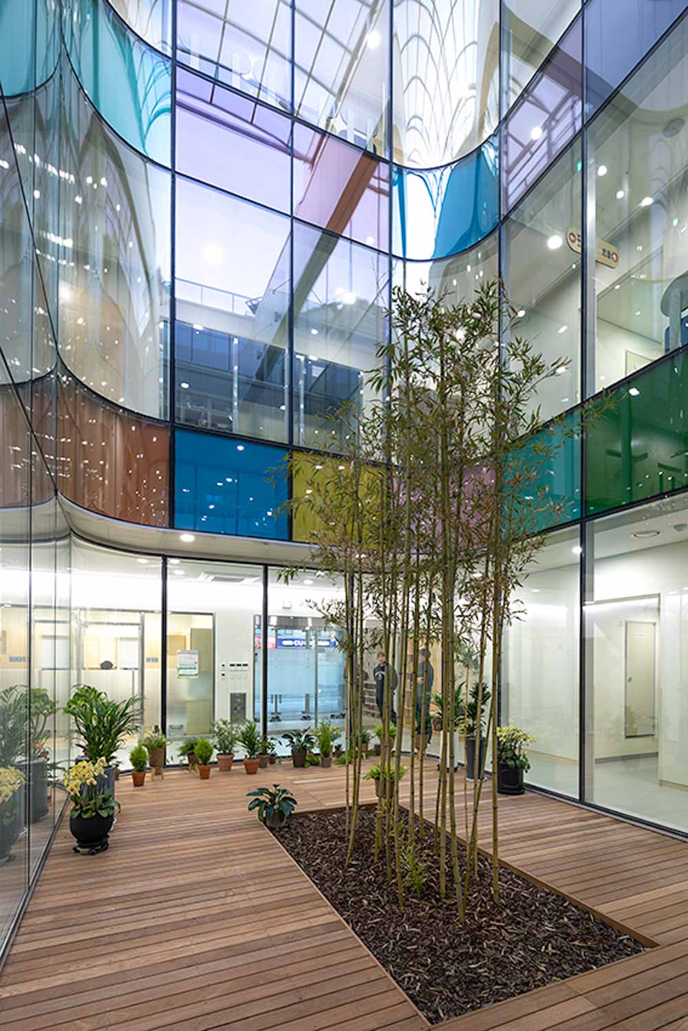 건축재료의 사용은, 전체 볼륨을 세라믹박판패널로 구성하여 볼륨감과 보육시설의 온화한 이미지를 만들면서, 저층부에 적벽돌과 삼나무를 부분적으로 사용함으로써 자연의 질감을 느낄 수 있도록 고려하였다.