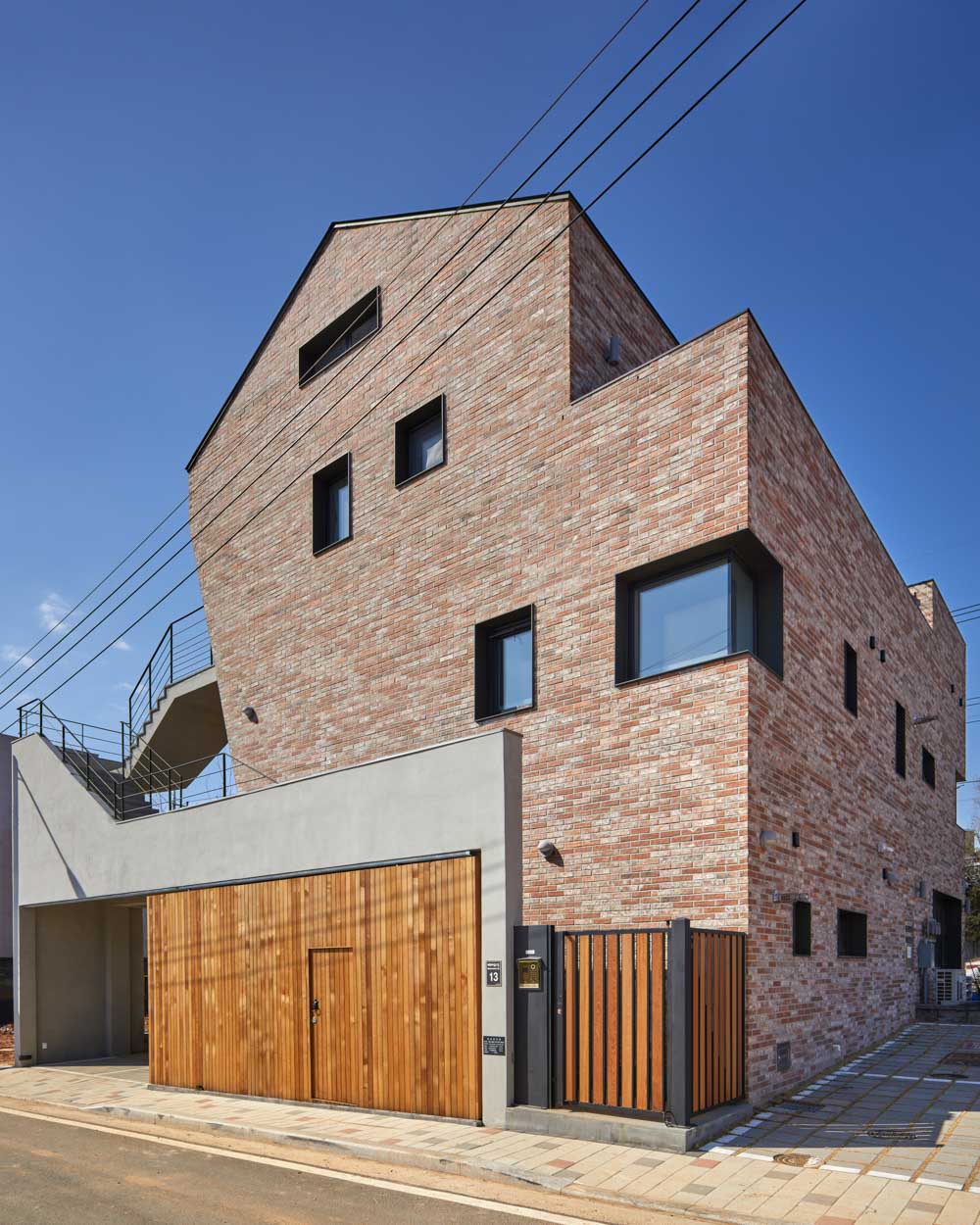 Vinacha Architect | Jo, Hanjun_ JoHanjun Architects Client | Choi, Youngok / Park, Sangtaek Construction | SYSHOME Construction Location | 13, Maehwamaeul 1-gil, Siheung-si, Gyeonggi-do, Korea Program | Commercial Facilities, Single Family House Site area | 329.00㎡ Building area | 196.56㎡ Gross floor area | 424.49㎡ Building to land ratio | 59.74% Floor area ratio | 109.27% Building scope | 3F Structure | RC Exterior finishing | Real zinc, Red Brick, Bangkirai natural deck Interior finishing | Painting finish above gypsum board, Exposed concrete, Wood flooring, Birch plywood Design period | Nov. 2018 – Mar. 2019 Construction period | Apr. 2019 – Dec. 2019 Photograph | Rohspace |