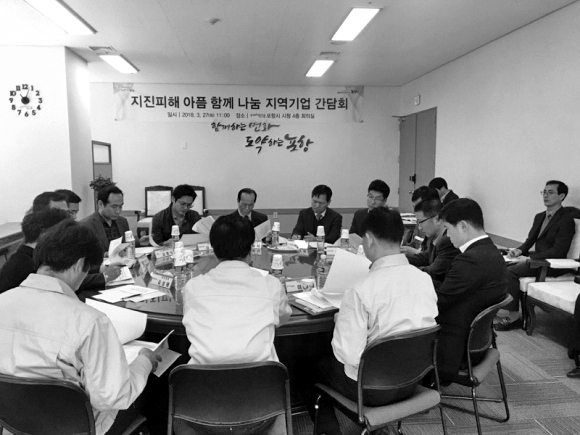 3월 27일 포항지역건축사회는 포항시가 개최한 간담회에 참석했다. 간담회는 2017년 11.15 지진으로 피해를 입은 지역주민들에게 주택복구 지원을 위해 개최된 것으로, 포스코, 현대제철, 동국제강 등 지역 공·기업체와 삼도주택 등 지역주택업체 등이 참석했다.