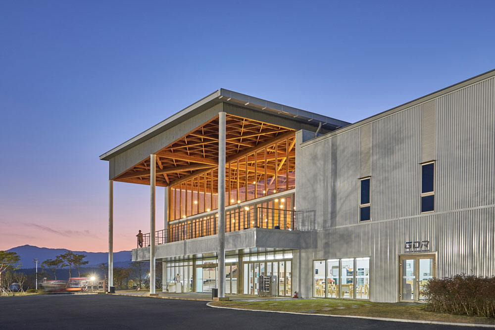 A wooden structure was chosen for economical module design. Still, it is a clubhouse that combines interior and architectural wooden structures and maximizes value under given conditions. At the same time, it is the most beautiful golf course clubhouse when the light from the incandescent lamp starting from the lobby of the clubhouse at sunset and the light transmitted from the translucent dining room illuminate the darkness.