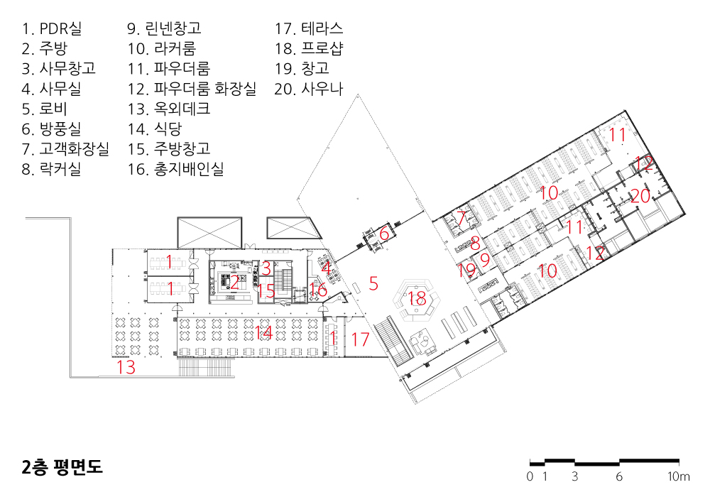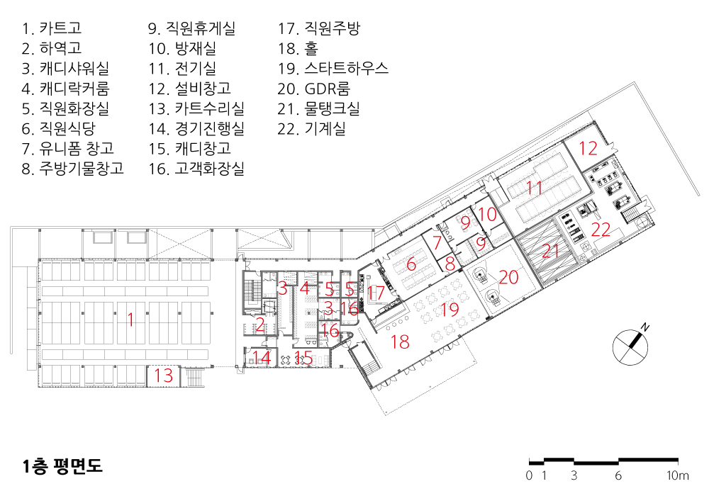By considering the scale and future of the building as considered at the initial design, I think it is reasonable to design a Cart warehouse in a separate facility. In addition, I believe the clubhouse of 1,653 m2 (500 pyeong) scale that can provide economical service and maximize the profit escaping from giving the full social and cultural benefit to customers will be the model of a public golf course in a coming new era. Therefore, I think it is good to prepare a suitable model of a public golf course by researching in advance.