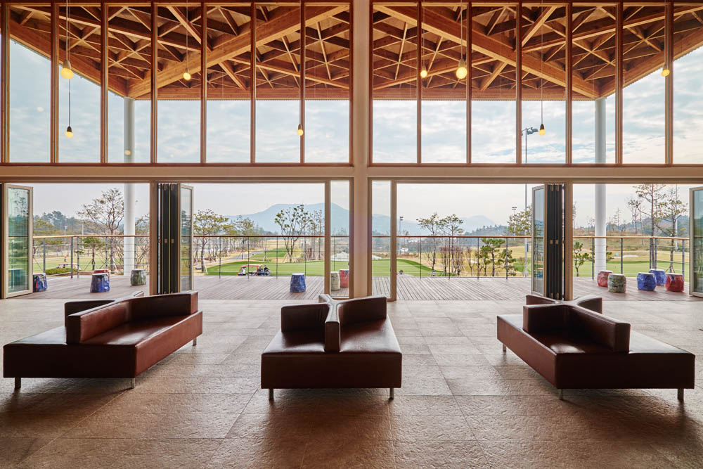 Golfzon County Cheongtong GC Club House Architect | Lee, Kwangman_Gansam Architects & Partners Client | Golfzon County Supervisor | Gansam Architects & Partners Construction | Shinsaegye Construction Project team | Yoon, Yeongseop / Ko, sungmin / Hwang, youngjin / Jeong, jiwon Location | Songcheon-ri, Cheongtong-myeon, Yeongcheon-si, Gyeongsangbuk-do, Korea Program | Sports Facility Site area | 733,990.00㎡ Building area | 3,980.99㎡ Gross floor area | 5,363.50㎡ Building to land ratio | 0.54% Floor area ratio | 0.73% Building scope | 2F Structure | RC, Timber Structure Exterior finishing | Aluminum Panel, Polycarbonate Interior finishing | Porcelain Tile, Eco-friendly paint Design period | Feb. 2014 - Sep. 2014 Construction period | Sep. 2014 - Mar. 2015 Photograph | Lee Seungmoo Structural engineer | Gansam Mechanical engineer | Northstar Electrical engineer | Sejin Electric engineering Fire engineer | Northstar |