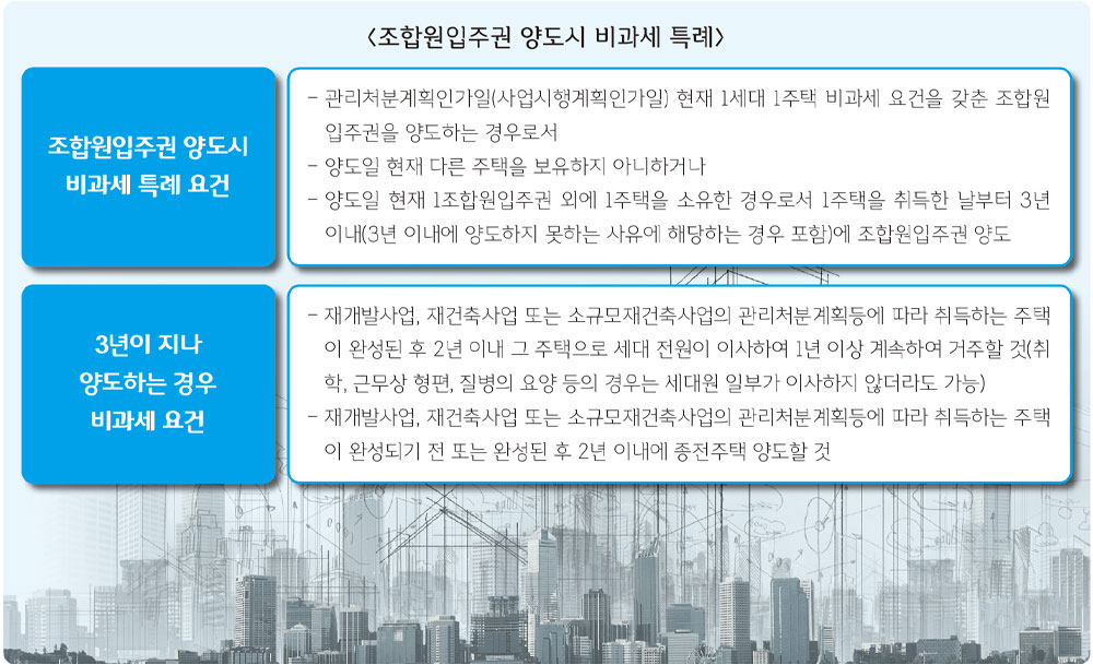 2. 조합원입주권 양도 시 양도소득세 비과세