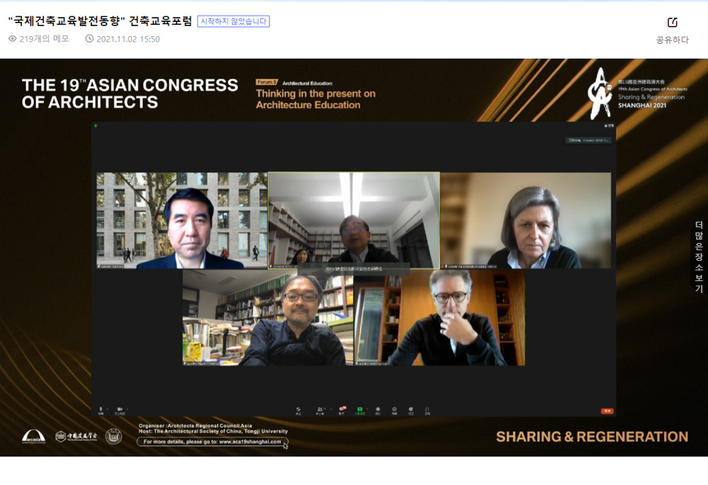 마지막 토론에서 각국의 건축사들은 아시아 각국이 지역과 문화는 다르지만 각자의 도시문화와 지역성, 환경에 대한 각 건축사의 고유한 접근방식에 따라 독특한 지역성이 발생하고 있다는 점에 공감하고, 내년부터는 실제로 얼굴을 맞대고 서로 경험과 교훈을 나누고 배울 기회가 오기를 소망하면서 세션을 마무리했다.