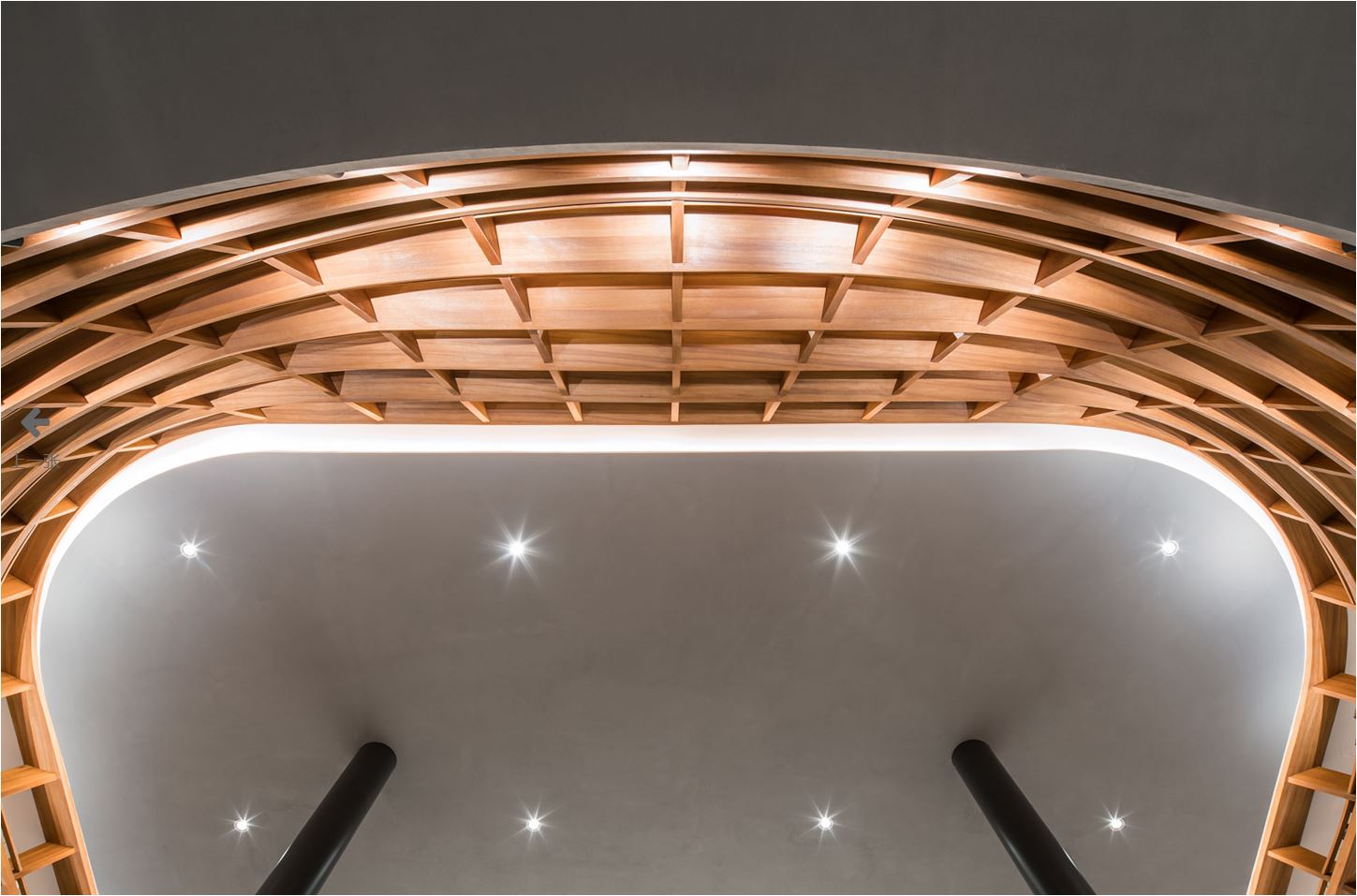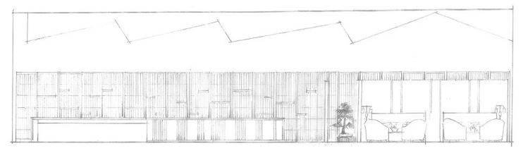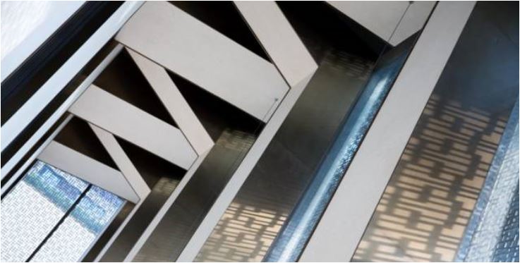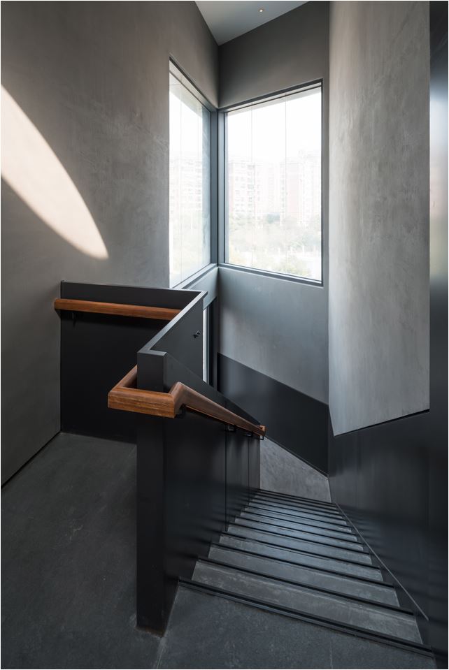 실내의 긴 복도는 밖으로부터 풍부한 채광이 내부로 들어오도록 디자인됐다. 또한, 공간의 리듬감을 살리기 위해 금속의 기둥과 그사이로 비추는 채광의 그림자가 마치 병풍처럼 실내에 비치도록 했다.