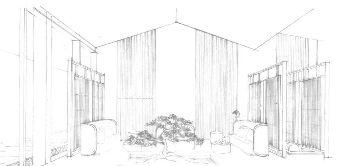 각각의 공간 설계는 연계성과 비율을 중점에 두고 표현됐다. 즉, 건축과 인테리어, 거칠고 평평한 자재의 질감, 건축물 디자인에 대한 표현의 깊이와 섬세함 등과 같은 건축적인 요소가 공간 곳곳에 표현되어 있다. 하나의 디자인 개념에서 다음 단계로 넘어가는 과정에서 생겨나는 중간단계의 여러 종류 디자인도 남아있다.