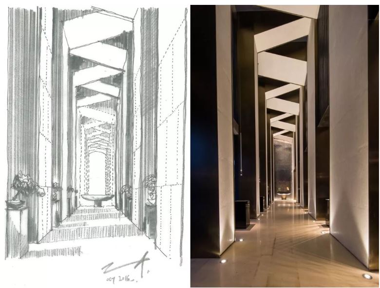 각각의 공간 설계는 연계성과 비율을 중점에 두고 표현됐다. 즉, 건축과 인테리어, 거칠고 평평한 자재의 질감, 건축물 디자인에 대한 표현의 깊이와 섬세함 등과 같은 건축적인 요소가 공간 곳곳에 표현되어 있다. 하나의 디자인 개념에서 다음 단계로 넘어가는 과정에서 생겨나는 중간단계의 여러 종류 디자인도 남아있다.