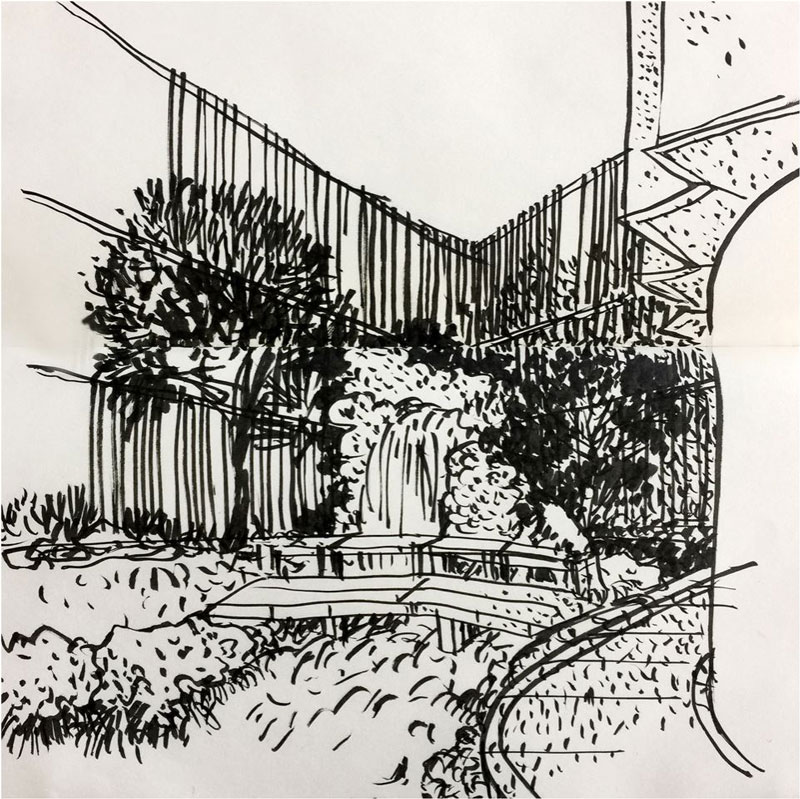 울타리 벽과 오래된 것들을 쪼갤 수 있고 중심부의 화려한 원형 건물의 배경이 될 수 있다고 판단됐기 때문이다. 또한, 완전히 밀폐된 울타리 벽면보다는 주변환경과 조화를 이룰 수 있다고 생각됐기 때문이다.