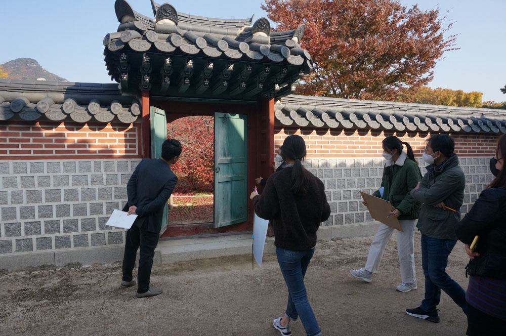2021년 11월 6일, 대학생 워크숍으로 협문 실측수업이 있어 경복궁을 방문했다. 남산골 한옥마을에 대하여 실측 및 도면작성 수업을 듣긴 들었는데 어느새 다 잊어버린 것을 대학생들에게 가르치기까지 해야 하다니 걱정부터 앞섰지만, 지도해 주신 선생님들의 “역시 우리 건축사님들 훌륭하십니다”라는 소리가 들리는 듯하여 정신 바짝 차리고 수업에 임하였다. 누굴 가르친다기보다는 배운 것에 대한 복습이라 생각하니 조금 마음이 편해졌다. 그러나 막상 학생들을 마주하니 긴장되는 것은 어쩔 수가 없었다. 가벼운 일상 얘기와 농담을 건네며 친해지려 해봤지만 우리보다 더 긴장한 것이 학생들임을 느낄 수가 있었다. 그도 그럴 것이 이미 우리가 교수님 뻘의 연배가 되어 있었기에 약간 어색한 동행이 시작되어 실측하려는 목적지로 향했다.