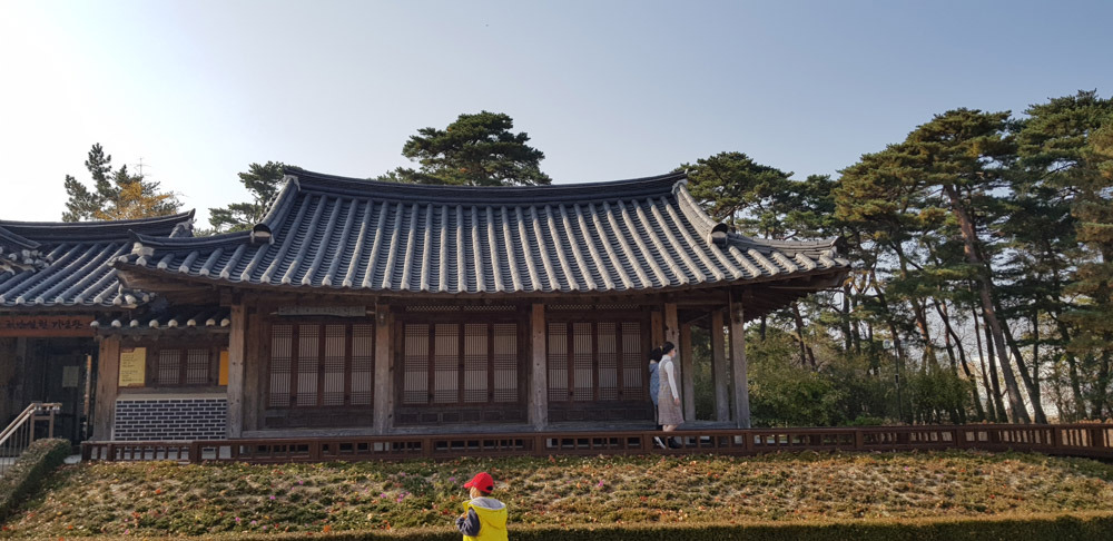 부지런히 몸을 움직여서 이번엔 대망의 선교장이다. 미리 답사 경험이 있는 동료 건축사분의 가이드로 엄청난 규모의 선교장 구석구석을 고개를 끄덕끄덕하며 따라가다 문득 돌아보니 다들 산보하듯 즐기고 있는 듯하다. 점심에 잠깐 따가웠던 햇빛도 살짝 기가 죽고, 바람이 낙엽들을 날리는 기분 좋은 오후 시간. 집과 그들의 사는 이야기를 궁금해하고 안타까워하며 신기해하는 우리를 보며 문득 웃음이 배시시 나온다. 선교장의 부지를 찾던 지관도 근방의 동물들이 삼삼오오 편안히 모여 지내는 곳이라 길한 터로 삼았다고 하시니 말이다.