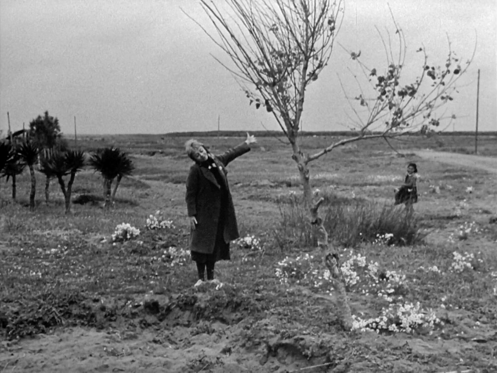 어린아이의 머릿속에서 순수한 기표는 무엇이든 될 수 있다. 아이들은 흔히 대상을 자기 마음대로 바꿔 노는 환상에 빠진다. 스스로를 바람이 되거나 기차가 되는 상상을 하며 논다. 아주 드물게 어른이 되어도 어린아이와 같은 마음을 유지하는 사람들이 종종 있다. 페데리코 펠리니의 영화 <길>의 주인공 젤소미나가 그런 사람이다. 젤소미나는 어린아이들을 즐겁게 해주는 재주가 있다. 들판에서 한 아이가 자신을 따라다니는 걸 눈치챈 그녀는 소녀를 즐겁게 해주기로 한다. 큰 가지 하나가 옆으로 길게 뻗은 나무 한 그루를 보고 젤소미나는 자신의 팔을 뻗어 나무 흉내를 낸다.<사진 2> 그걸 본 아이가 까르르 웃는다. <길>에서 이 장면은 어른인 젤소미나가 여전히 맑고 순수한 영혼을 지녔음을 보여준다. 자신에 대한 정체성을 고정하지 않고 나무로 변신하는 것, 또 나무를 보고 팔을 뻗은 사람으로 상상하는 것, 두 가지 모두 어린아이처럼 주체와 대상을 순수한 기표로 보는 태도 또는 주체와 대상을 고착된 기의로 보지 않는 태도에서 나올 수 있기 때문이다.