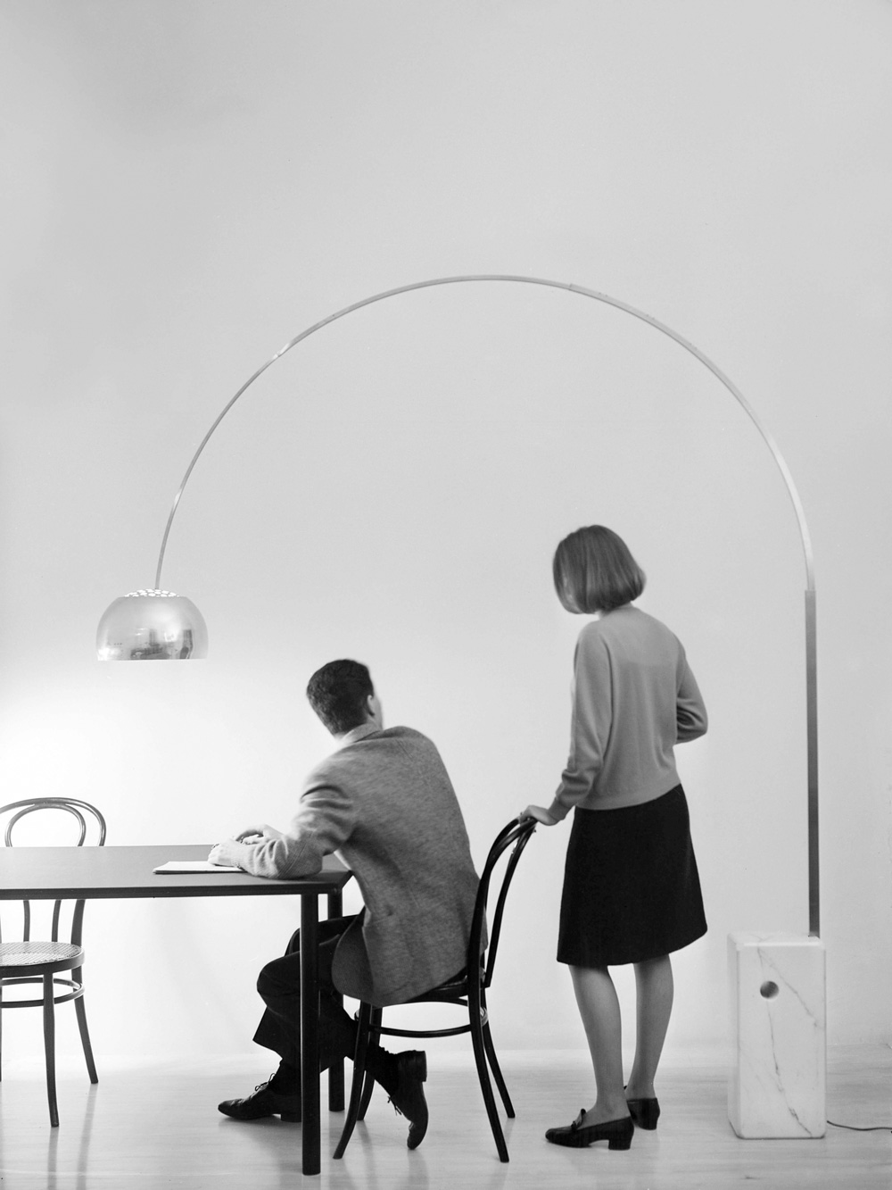 자유로운 기표가 가진 변신 가능성을 활용하는 건 디자인의 세계에서도 흔히 발견된다. 이탈리아의 아킬레 카스틸리오니가 이런 태도를 가진 대표적인 디자이너다. 그가 디자인한 메차드로는 트랙터의 좌석과 휘어진 막대기, 그리고 나무 받침대를 결합해 스툴을 만들었다.<사진 4> 그가 디자인한 스툴 역시 기존의 스툴과 너무나 다른 모습이어서 사람들로 하여금 스툴처럼 보이지 않게 한다. 즉 이 스툴 역시도 기의로 잘 가 닿지 않는 기표인 셈이다. 카스틸리오니는 그렇게 정체성이 분명하지 않은, 즉 기표와 기의의 관계가 모호한 디자인을 잘 한다. 그가 디자인한 아르코라는 램프가 있다.<사진 5> 이 램프는 플로어 램프인지, 펜던트인지, 테이블 램프인지 그 범주가 명확하지 않다. 이러한 모호성은 기표를 고착된 기의로 확정하지 않음으로써 사람들을 혼란하게 만든다. 낯섦, 이것은 창조적인 예술가와 디자이너들이 추구하는 목표 가운데 하나다. 낯섦이란 해방된 기표, 자유로운 기표의 다른 이름이다.