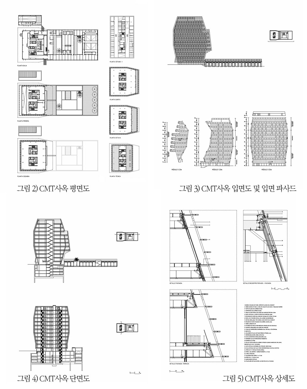 이번 호에서 소개할 건물은 스페인의 건축사사무소 배틀 앤 로이그 아키텍츠 -Battle & Roig Architects-에서 설계한 바르셀로나의 CMT 사옥-Telecommunications Market Commission Headquarter- 이다. 사이트는 바르셀로나의 카스텔비 그룹사-Grupo Castellví- 에 의해 개발되고 있는 41,000㎡ 이상의 사무실과 호텔을 포함한 대규모 비즈니스 단지이다. 4면에 도로-Carrere de Bolivia, Ciutat de Granada, Sancho- 가 접해있지만 큰 길에서 접근할 수 있는 주도로는 카레르 데 볼리비아-Carrere de Bolivia- 뿐이고 나머지 도로는 다른 대지와 경계선을 이룬다. 특이한 점은 1906년에 지어지고 포블레뉴-Poblenou- 의 산업 유산에 대한 특별 문화 보호 계획 아래 있는 Can Tiana 공장이 위치해 있었다. 이러한 도시의 기능상의 분류, 그리고 축과 같은 조건과 문화재 보호 제한 요소는 CMT 사옥 설계의 시작점이 됐다.