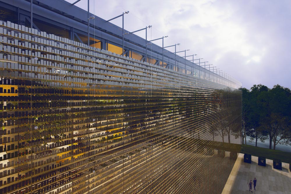 디지털문화유산센터는 직원부터 창작자, 방문하는 사람들이 연주하는 ‘공간적 악기’가 될 수 있도록 제안했다. 현대적이고 기술적으로 진보된 도구는 콘텐츠를 발전시킨다. 디지털문화유산센터는 향후 건물에서 일어날 활동들과 전시에 따른 변화와 미래의 기술적인 발전에 적응할 수 있도록 설계되었다. 건축은 오랜 시간에 따라 탄력적으로 변화한다. 이는 경계 없는 사회(Liquid Society)에 긍정적으로 기여하고, 조화를 불러일으킨다. 디지털문화유산센터는 디지털처럼 빠르게 발전하는 분야에서 현재 우리의 예상을 넘어서는 미래에 빠르게 대응할 수 있는 유연성을 갖추고 있다. 디지털문화유산센터는 단순한 전시공간이 아니라, 콘텐츠를 만들어내는 공간이자 대한민국의 과거와 현재, 미래가 소통할 수 있는 새로운 장소가 될 것이다. 따라서 물리적인 공간의 사용을 넘어 가치를 전달하는 ‘소통의 미디어 도구’로 기능해야 한다. 이를 위해 업사이클링한 스마트폰을 기반으로 한 특별한 미디어 파사드를 계획했다. 이에 따라 디지털문화유산센터는 다양한 공간과 영역에 따라 간결하면서도 유연하게 설계되었다. 건축물은 박물관 단지의 맥락에 어울리면서도, 자체적으로 기술적인 가치를 더한다. 공공공간인 건물 앞 광장에서는 발표회나 이벤트, 전시 등을 열 수 있는 공간의 잠재력을 갖추고 있다. 또한 북쪽과 동쪽을 관통하는 미디어파사드는 대형 스크린을 연출할 수 있다. 북쪽 정면의 사이의 주출입구는 비나 과도한 햇빛을 막아주는 덮개 역할을 하면서도 열린 공간이다.