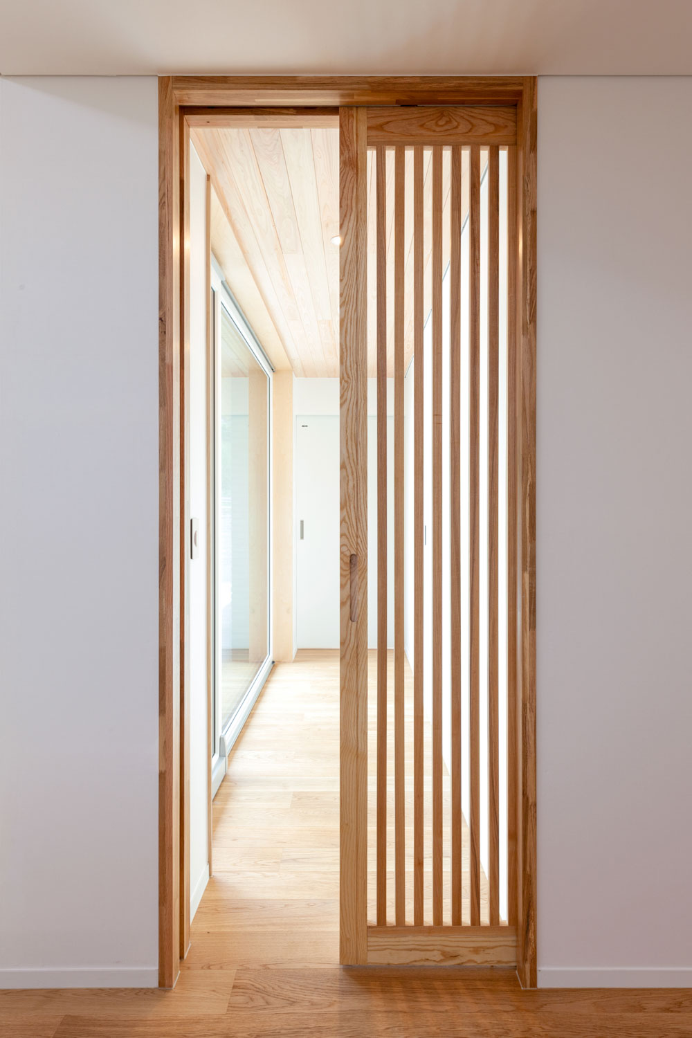 대문을 열고 들어서면 가로로 긴 매스와 마주한다. 마치 한옥의 사랑방을 닮았는데, 손님을 맞이하는 공간이기도 하고 사적인 생활이 가능하도록 안마당을 보호하는 요소이기도 하다.