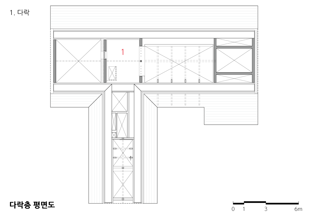 The structure is a hybrid structure in which the foundation and walls are reinforced concrete, and the roof is a Wooden post & beam Structure. It was a choice that used wood to give a feeling similar to that of hanok and considered the construction of the sloped roof.