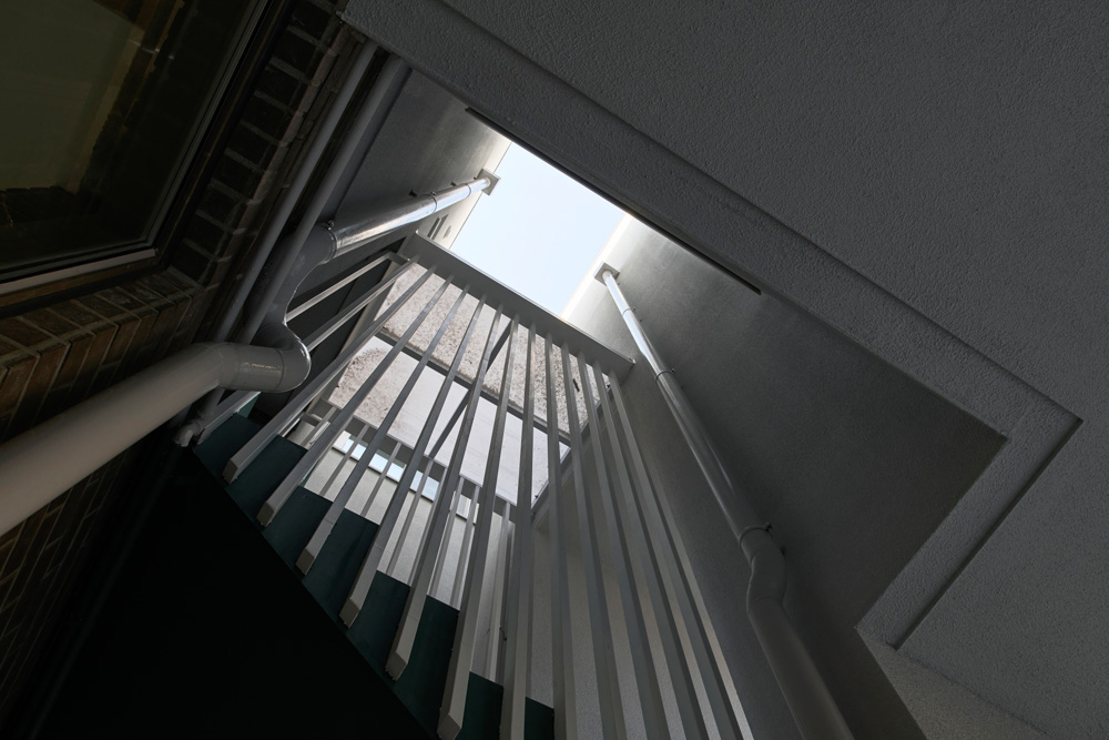 좁고 긴 창으로 한 사람 한 사람의 생활이 조명되고, 서향의 눈부심을 커튼처럼 굽어진 면으로 막아서고 그 창 앞으로 한발 더 나아가도록 하는 것이 입면 구성의 가장 큰 목표였다.