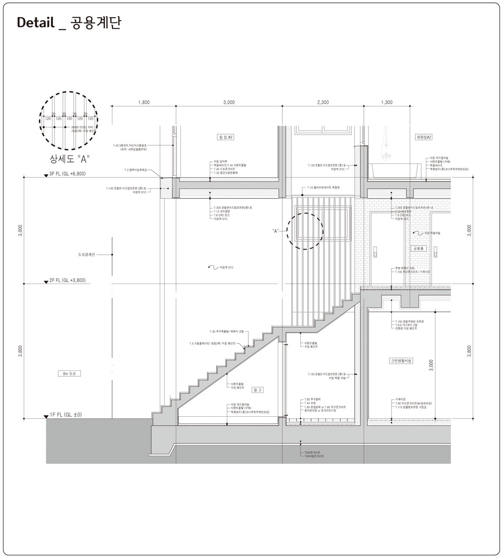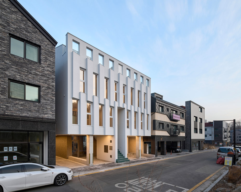 커튼콜 설계자 | 조병규_투닷 건축사사무소(주) 건축주 | 한민주 감리자 | 조병규 시공사 | (주)마루디자인건설 설계팀 | 천철규, 소정호, 심건규 대지위치 | 경기도 고양시 덕양구 꽃내음1길 35 주요용도 | 다가구주택(4가구), 근린생활시설 대지면적 | 230.70㎡ 건축면적 | 138.02㎡ 연면적 | 341.92㎡ 건폐율 | 59.83% 용적률 | 148.21% 규모 | 3층 구조 | 철근콘크리트구조 외부마감재 | STO외단열 시스템(기린건장) 내부마감재 | 자작나무합판, 벽지, 강마루 설계기간 | 2020. 02 - 2020. 07 공사기간 | 2020. 08 - 2021. 02 사진 | 최진보 전문기술협력 - 구조분야 : 델타구조 - 기계설비분야 : (주)한빛안전기술단 - 전기분야 : (주)천일엠이씨 - 소방분야 : (주)천일엠이씨 |