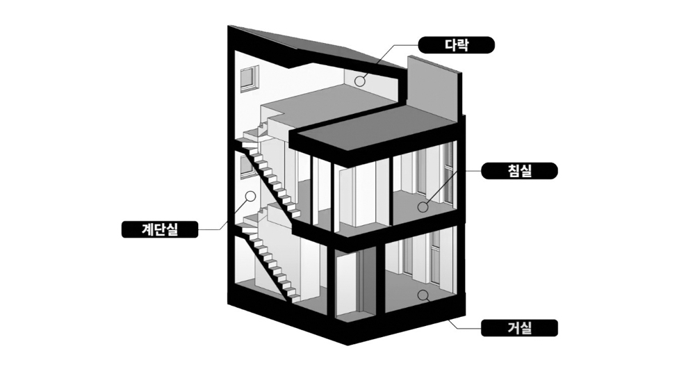 - 3층이라는 규모에서 엘리베이터는 계륵과 같다. 있으면 편리하겠지만, 이로 인해 거주 환경은 제약되고 사용 가능한 전용면적도 줄어들게 된다.