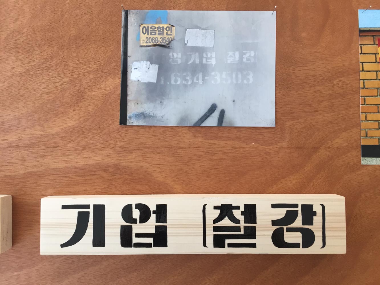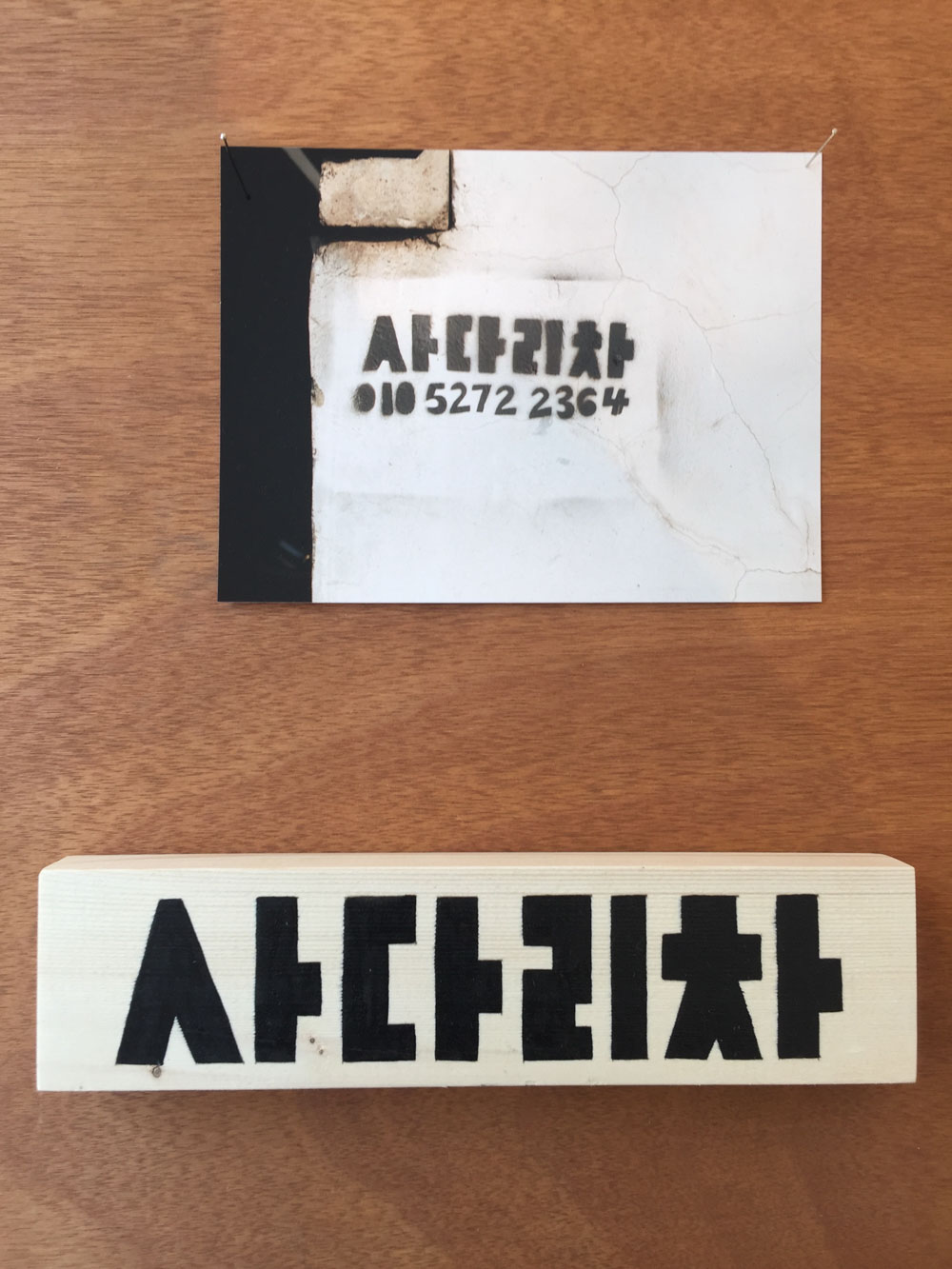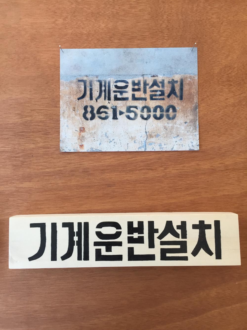 그 글자는 스텐실 글자다. 스텐실은 영문의 가라몬드나 헬베티카, 또는 한글의 명조체나 궁서체처럼 활자화된 서체의 종류가 아니다. 스텐실은 글자를 만드는 데만 적용되는 것도 아니다. 원래는 그림을 그리는 데 활용한 기법이다. 스텐실은 그림이 표현될 종이나 벽 위에 구멍이 뚫린 마분지나 금속, 나무와 같은 중간 매개체를 올려놓고, 구멍 안에 붓이나 스프레이로 색을 채워 그림을 그리는 기술이다. 그 구멍의 모양이 바로 그리고자 하는 그림의 내용이 되는 것이다. 그런 기술로 그림뿐만 아니라 글씨도 쓸 수 있음은 물론이다. 글씨는 그림보다 더 단순하고 명확해야 하기 때문에 많이 활용되는 것 같다. 스텐실 기법이 가장 많이 활용되는 곳은 군대다. 스텐실 글씨는 손으로 쓴 글씨와는 달리 삐뚤빼뚤 하지 않게 곧고 바르게 쓸 수 있다. 즉 군대의 성격에 맞게 절도 있게 만들 수 있는 것이다. 게다가 일종의 대량생산 방식이어서 똑같은 모양으로 복제하기 좋다. 스텐실의 그런 특성으로 인해 군대에서 많이 사용되었다.<사진 1>