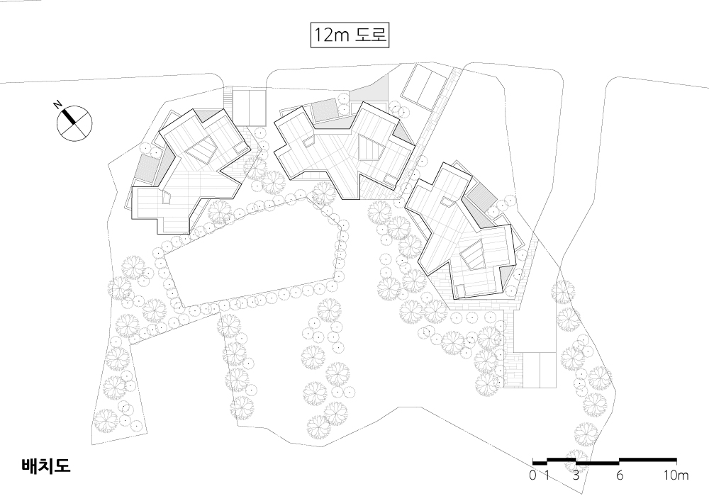 A void (courtyard) is naturally formed between the twisted gaps of the mass of various angles divided with various views, and light and nature are introduced into the interior in the form of a courtyard and a skylight. In addition, the naturally formed terrace between the twisted mass connects the relationship with the coast of Gimnyeong more strongly.