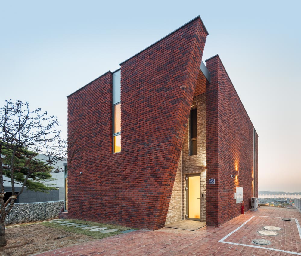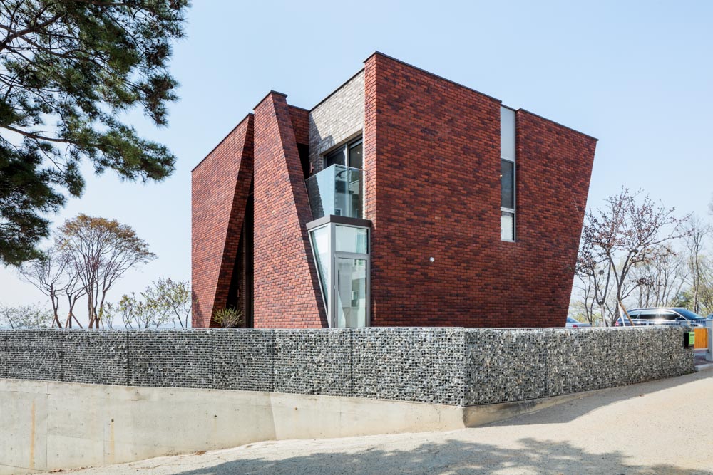 벽돌이라는 재료로 사선을 표현하되 선의 날카로운 긴장감을 잃지 않도록 하는데 중점을 두었다.