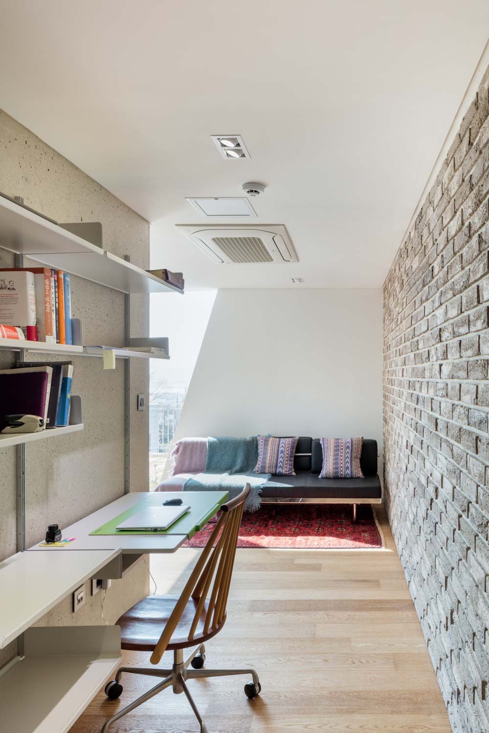 서재와 거실 사이의 포켓 공간은 작지만 작은 거실로서 사용되는, 색다른 쉼을 제공하는 공간으로 계획되었다.