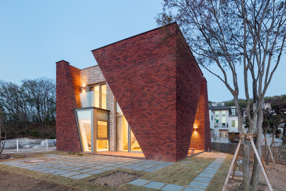 벽돌이라는 재료로 사선을 표현하되 선의 날카로운 긴장감을 잃지 않도록 하는데 중점을 두었다.