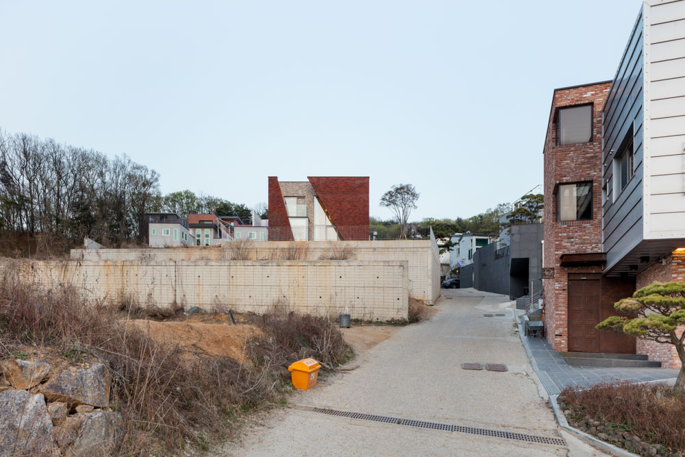 대지는 이미 콘크리트 옹벽으로 일부 조성된, 약간의 경사를 지닌 땅이었다.