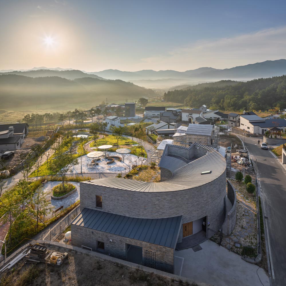 GIMCHEON Curved House Architect | Kim, Changgyun _ UTAA Company Client | Jeong, Hanuk Supervisor | Kim, Changgyun _ UTAA Company Construction | SYSHOME CONSTRUCTION Project team | Bae, Youngsik / Lee, Joeun / Choi, Minhee Location | 20, Dogongchon 2-gil, Nongso-myeon, Gimcheon-si, Gyeongsangbuk-do, Korea Program | House Site area | 463.70㎡ Building area | 148.64㎡ Gross floor area | 141.71㎡ Building to land ratio | 32.06% Floor area ratio | 30.56% Building scope | 1F Structure | Wood structure Exterior finishing | Brick Interior finishing | Wall·Ceiling _ Paint / Floor _ Wooden floor Design period | Jun. 2020 - Oct. 2020 Construction period | Apr. 2021 – Sep. 2021 Photograph | Yoon, Joonhwan Structural engineer | Gumna Structure Mechanical engineer | Codam Technical Electrical engineer | Codam Technical Fire engineer | Codam Technical |
