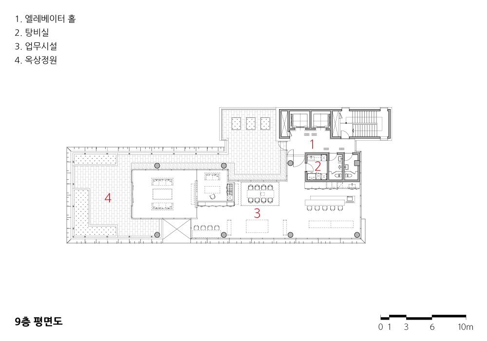 Seong-su Jeong-Am Building Architect | Seo, Daekook _ Jium A&D Architects Co-Architect | Seo, Kyuduck (AIA) Client | Naepo Remicon Supervisor | Seo, Daekook _ Jium A&D Architects Construction | Maru design construction Project team | Park, Juhyung / Han, Jaein / Son, Jiwook / Jung, Jibum Design intention realization | Seo, Daekook _ Jium A&D Architects Location | 232, Gwangnaru-ro, Seongdong-gu, Seoul, Korea Program | Office and convenience facilities Site area | 905.50㎡ Building area | 488.20㎡ Gross floor area | 4,746.48㎡ Building to land ratio | 53.91% Floor area ratio | 395.44% Building scope | B2 - 9F Structure | RC Exterior finishing | Aluminum Rubber, Pair glass Design period | Jan. 2019 – Mar. 2020 Construction period | May 2020 – Jul. 2021 Photograph | Park, Gunjoo Structural engineer | Igun Mechanical engineer | Mck&M EC Electrical engineer | Seowon Fire engineer | Mck&M EC, Seowon |