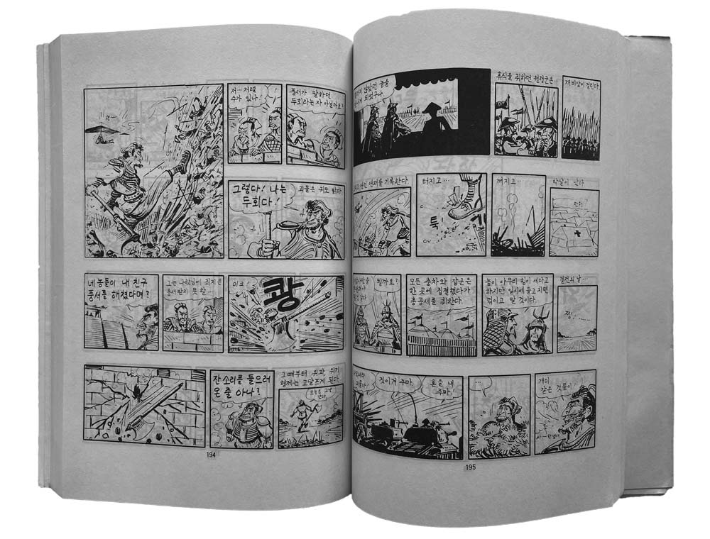 만만한 건 역시 문학 분야다. 예전에도 늘 살생부에서 제거 대상에 주로 오르던 책들이 소설과 수필이다. 왠지 또 읽어볼 거 같지가 않아. 꼭 다시 읽어보고 싶다면 도서관에서 빌리면 되지. 몇 권을 고르려고 했는데, 이미 많이 없애버렸고 정말 꼭 남아야 할 것만 남아서 이제는 선정할 책 찾기가 오히려 힘들어졌다. 결국 최재우의 『동주열국지』 8권을 살부에 등록했다. 내가 언제 『열국지』를 또 보랴. 이 책은 매년 살부 후보에 올랐다가 가까스로 살아남기를 반복했으나 올해는 넘기지 못했다. 하지만 고우영의 만화 『열국지』 4권은 도저히 버리지 못했다. 『열국지』를 펼쳐본 순간 그 속의 그림들이 너무나 매력적이다.<사진 2> 마치 중세 채식필사본처럼 빛이 나는 거 같아. 나는 그 이미지에 황홀해하면서 이 책은 오래 간직해둬야겠다는 다짐까지 하고 말았다. 역시 이미지는 힘이 세다.