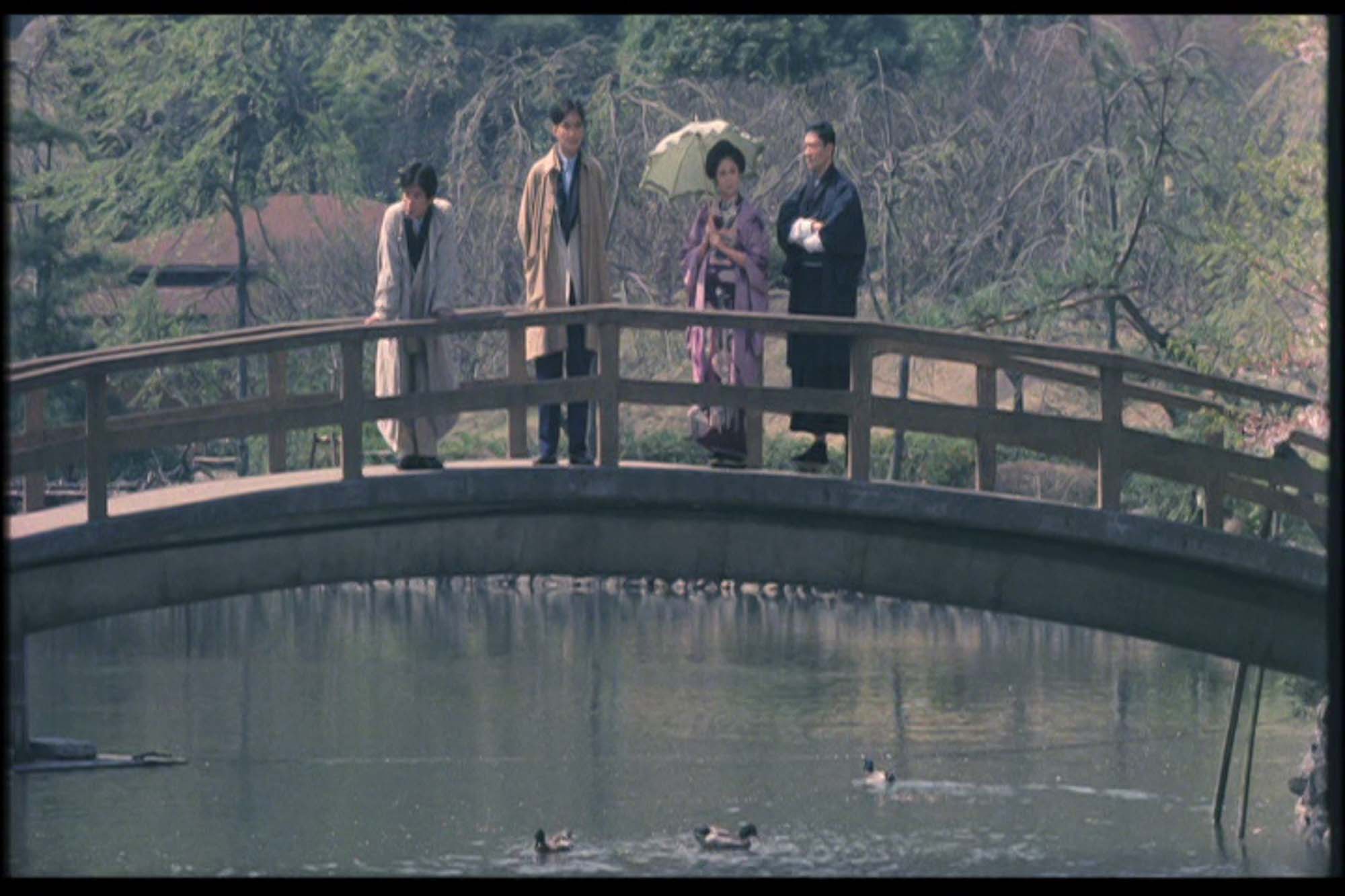 영화에서는 소설의 첫 장면을 상당히 인상적으로 묘사한다. 짙은 안개 속 마차가 지나가는 질척한 길을 마나이따 게다를 신고 성큼성큼 걷는 장면을 지나 주인공이 잠에서 깨어나는 것으로 시작한다.
