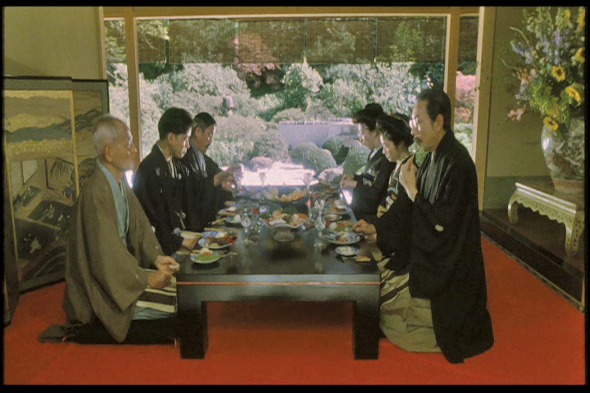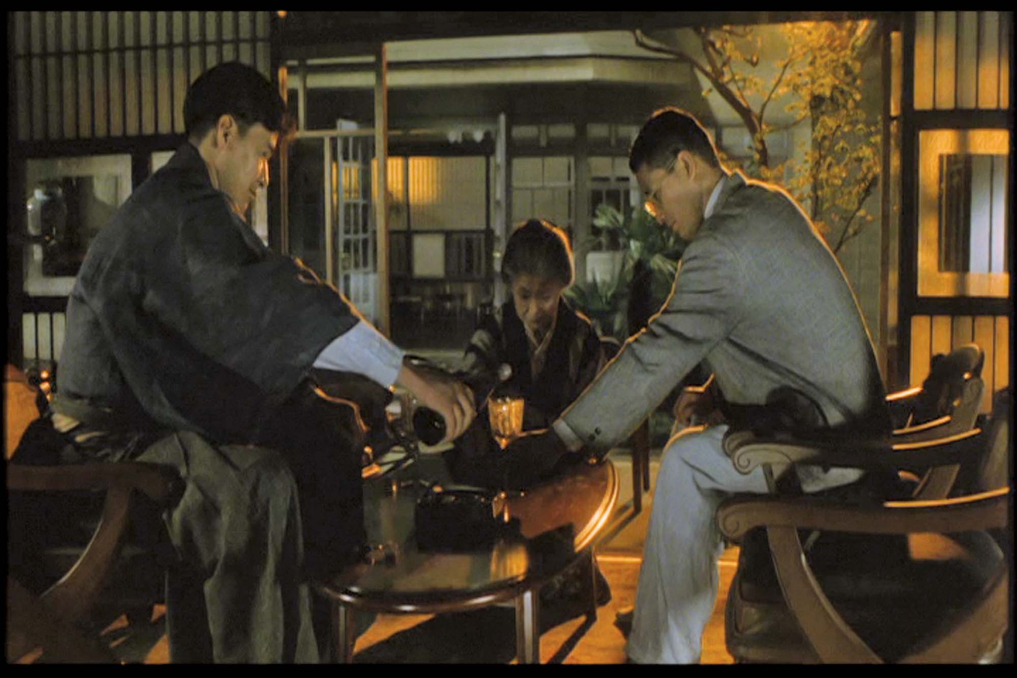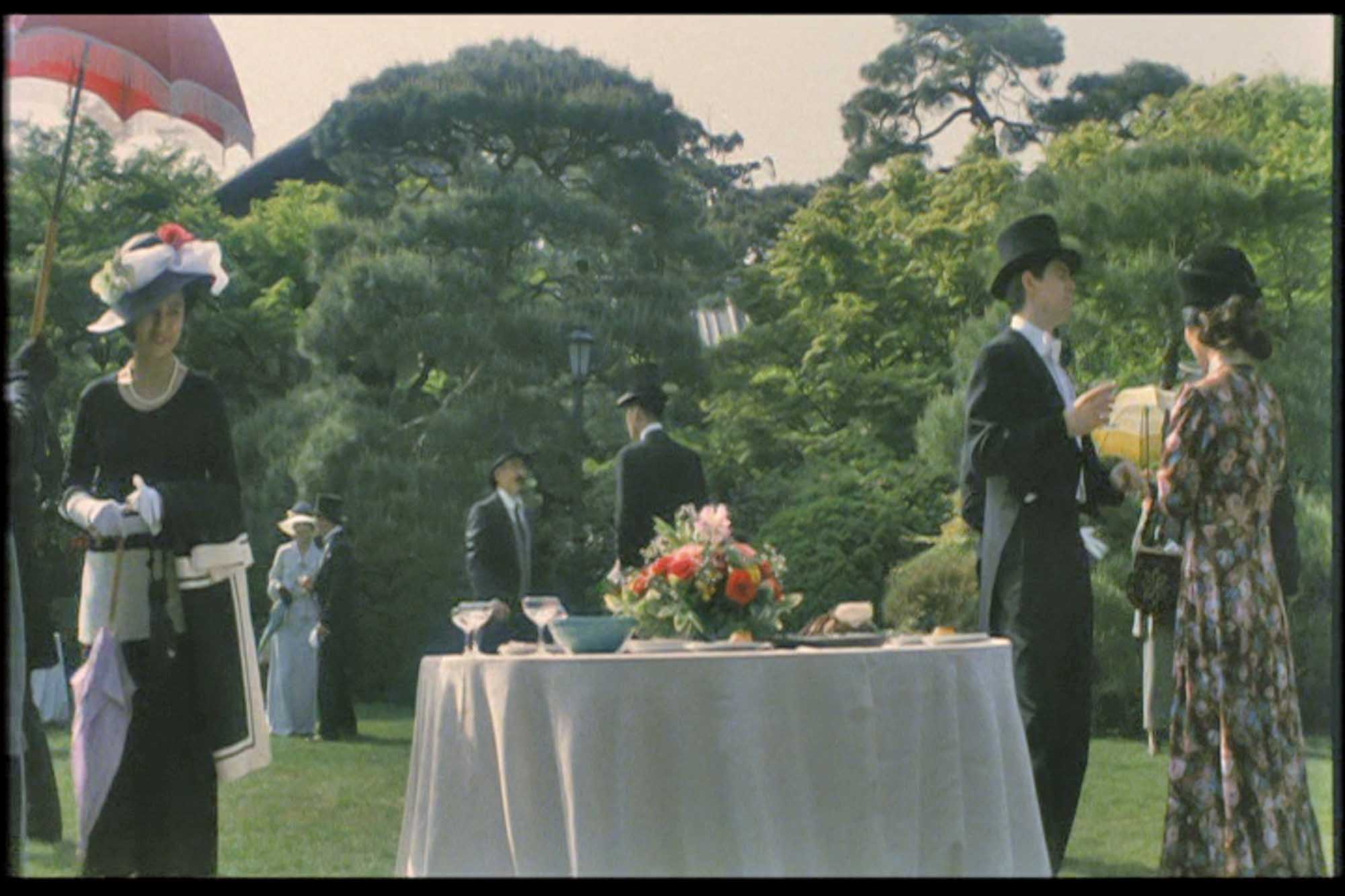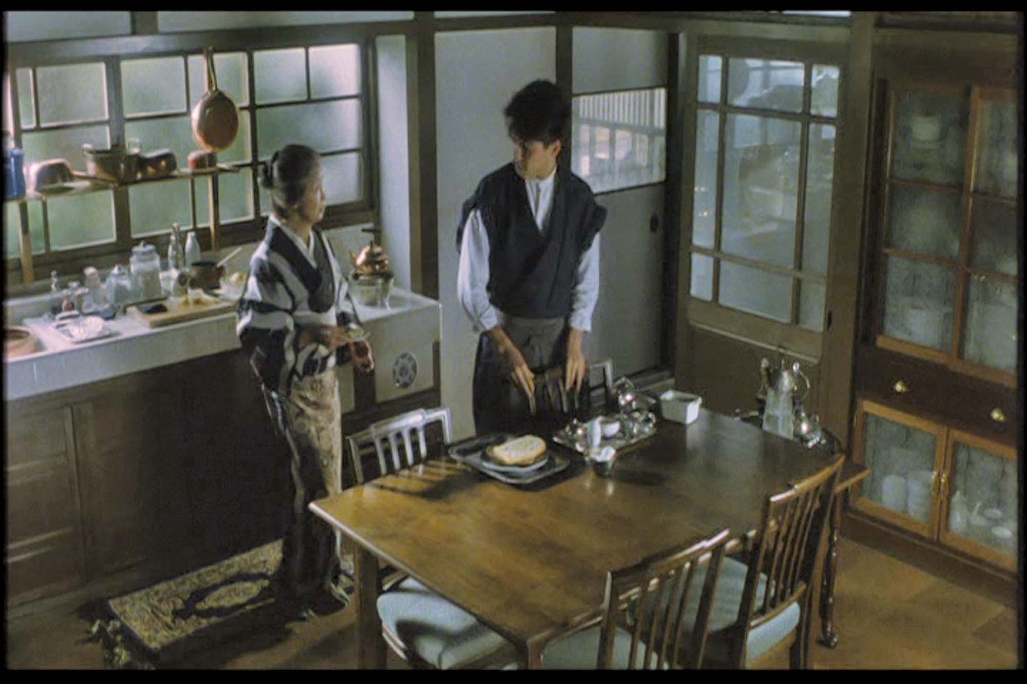 이 영화에서 건축적으로 괄목할 만한 점은 19세기 말에서 20세기 초 일본의 상류계층의 삶을 반영하는 전통 가옥구조와 생활상을 묘사하는 한편 메이지 유신 이후 서구화된 문명의 절충양식을 함께 보여주는 것이다. 상황에 따라 기모노와 양복을 갖춰 입고 등장한다. 형제가 탑햇(top hat)을 벗어 놓고 담소할 때 전통가옥에 서생을 두고 사는 아우는 사케를 마시고 양관에 거주하는 형은 맥주를 마시는 장면이나, 프랑스 풍의 정원이 있는 절충식 3층 규모 양관에 거주하는 형의 가족들의 일상과 스키야 구조의 일본식 가옥에 사는 아우의 일상 등이다. 손님을 초대해 식사를 하는 곳은 전통정원이 내다보이는 다다미 방을 갖추고 있는 반면, 서양품종의 커다란 개를 기르며 바이올린을 켜는 딸이나 야구를 좋아하는 아들이 있고 프랑스 풍의 정원에서 외교사절이나 고관들을 초대해서 파티를 열거나 멘델스존 곡을 연주하는 소규모 실내음악회 등을 가족단위로 참석하는 것이 사업가인 형의 삶이다. 한 집안에서 연로하신 아버지 나가이가 거주하는 전통가옥 부분은 도코노마를 갖춘 전통 다실의 풍경을 연출하고, 중용의 한 구절을 서예작품으로 걸어 놓고 거의 가훈처럼 보여준다. 히라오카의 집은 서울 북촌에서 봄 직한 아주 작은 네모난 마당이 있는 전통 일본식 가옥이다.