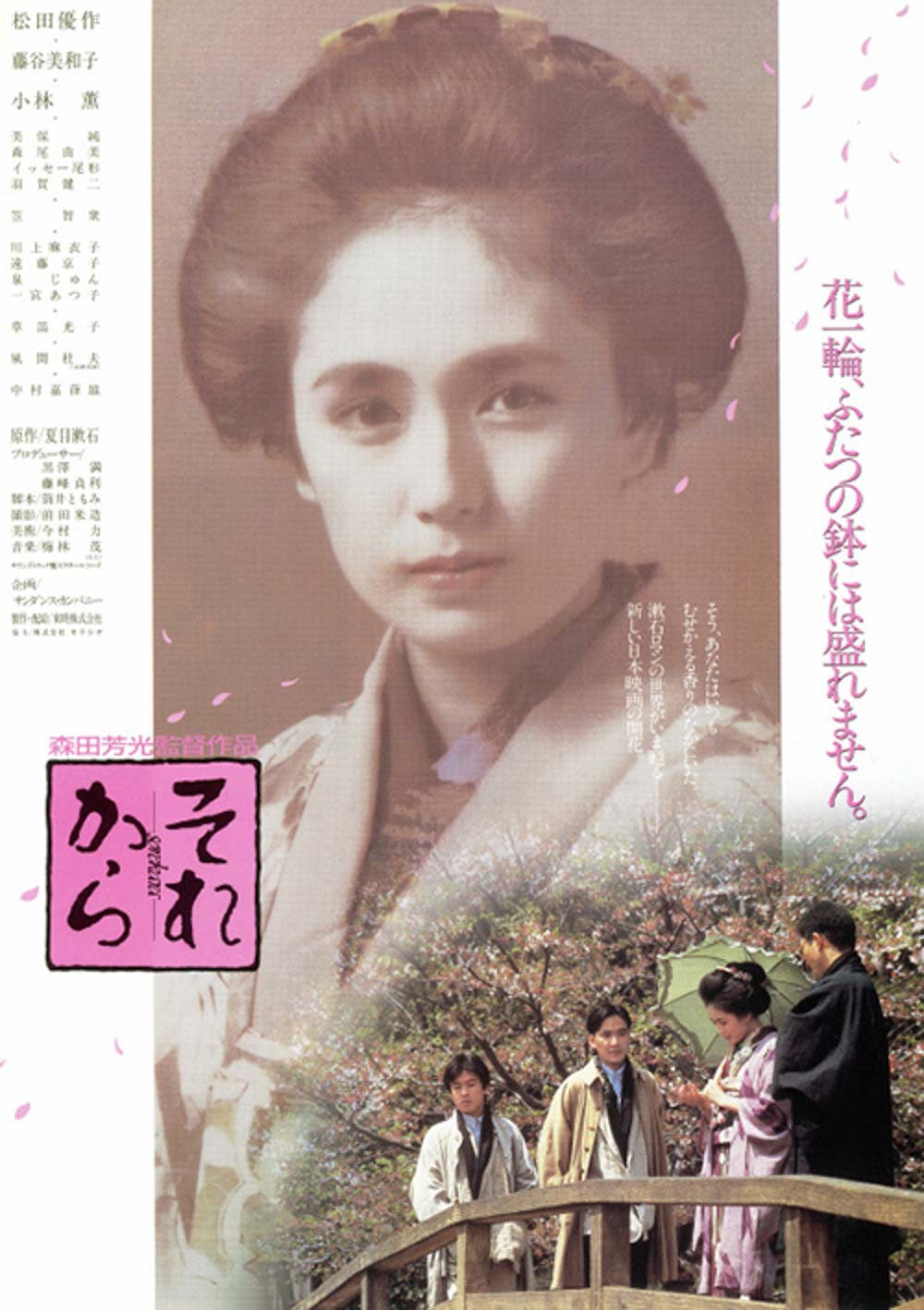 | 1985년 모리타 요시미츠(MORITA Yoshimitsu_森田 芳光, 1950~2011)감독/ 나츠메 소세키(NATSUME Soseki_夏目 漱石, 1867~1916)의 소레카라(それから, 其后, lit. "And Then", 1909) 원작/ 츠츠이 토모미(TSUTSUI Tomomi_筒井ともみ, 1948~ ) 각본/ 우메바야시 시게루(UMEBAYASHI Shigeru_梅林 茂 1951~)음악(running time: 130 minutes) 주연 : 마츠다 유사쿠(MATSUDA Yūsaku_松田 優作, 1949~1989), 후지타니(오카무라) 미와코(OKAMURA Miwako_岡村 美和子, 1963~ ), 코바야시 카오루(KOBAYASHI Kaoru_小林 薫, 1951~ ), 류 치수(RYU Chishū_笠 智衆 1904~1993) 외 |