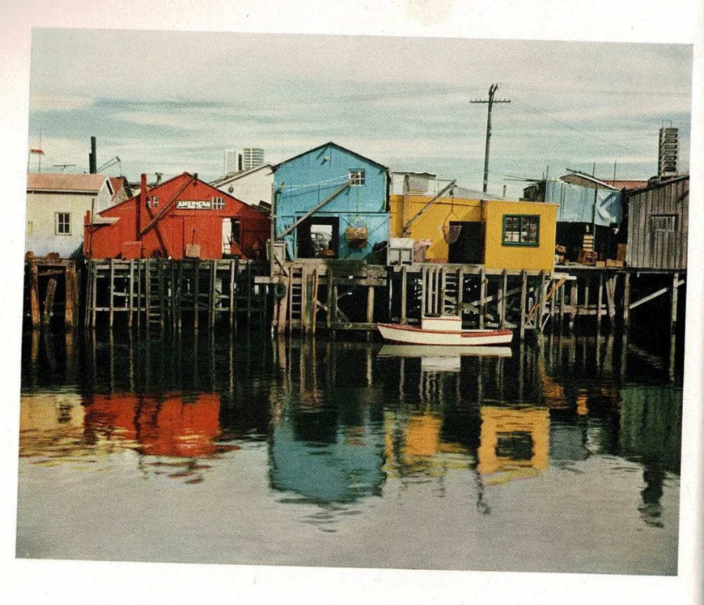 반면에 컬러사진에서는 밝기의 변화와 대비가 아니라 색채의 강렬함이나 구성이 그 역할을 대신하므로 계조의 풍부함이 시각적인 주도권을 행사하지 않는다. 에드워드 웨스턴은 늦은 나이에 컬러 사진을 찍기 시작했다. 그가 찍은 컬러의 부두 사진과 흑백의 피망 사진을 비교해 보자.<사진 7> <부두>의 주제는 집 자체라기보다 집의 표면에 입혀진 색채들, 그 색채들의 구성에 있다. 붉은색, 파란색, 노란색이 연달아 있고, 그 색들이 물에 반사되어 있는 것까지 하나의 구성작품이다. 이 컬러사진은 피망 사진에 두드러졌던 입체감은 사라지고 평면화되었다. 기록사진가가 아닌 예술사진가 웨스턴에게 컬러사진이라는 미디어는 평면적인 대상이 더 적합한 피사체라고 판단한 것이다. 하지만 컬러사진은 다큐멘터리 사진에 더 어울린다. 컬러사진은 사람이 눈으로 본 세상과 더욱 닮아 있기 때문이다. 즉 컬러사진은 흑백사진보다 덜 회화적이다.