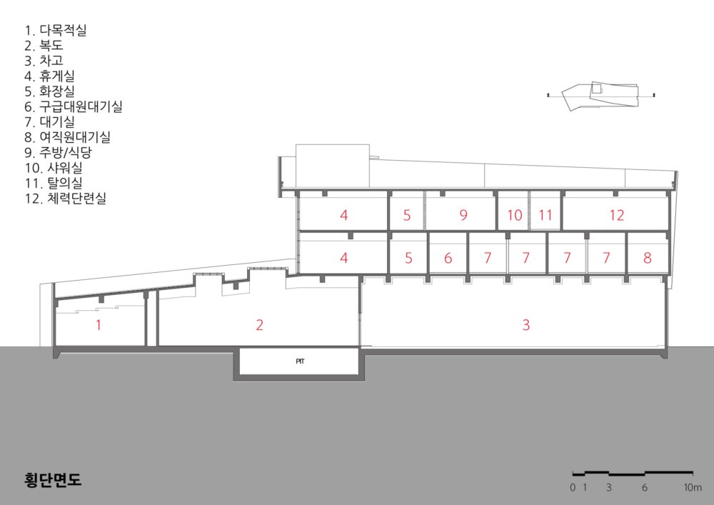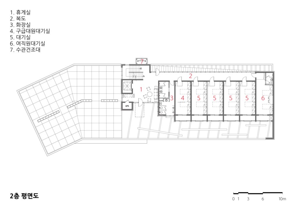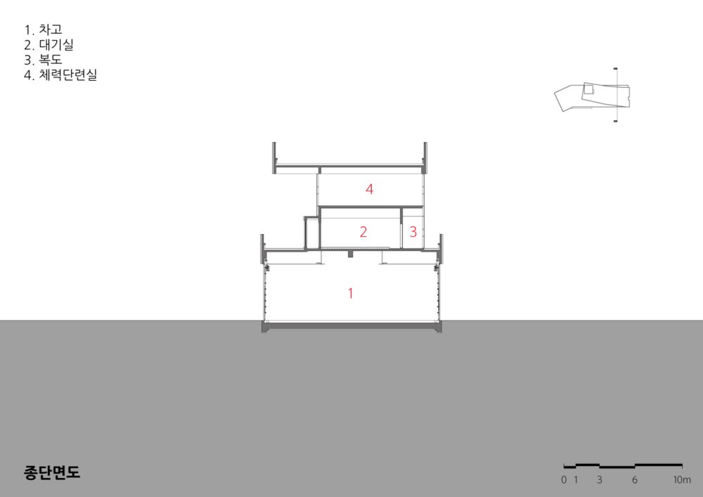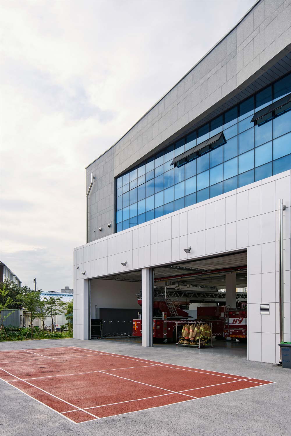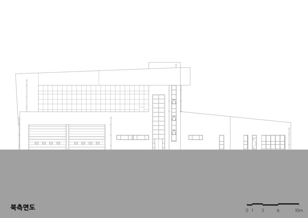 관공서로서의 소방서가 갖고 있는 획일적이고 단순한 형태를 탈피하고 새로운 상징성과 형태를 통한 소규모 관공서의 변화 가능성을 제시하고자 했다. 무채색의 석재와 보드로 구성된 외부는 강렬한 빨강색의 강조색과 확실한 대비를 가져와 랜드마크의 상징성을 더욱 부각시키도록 했다.