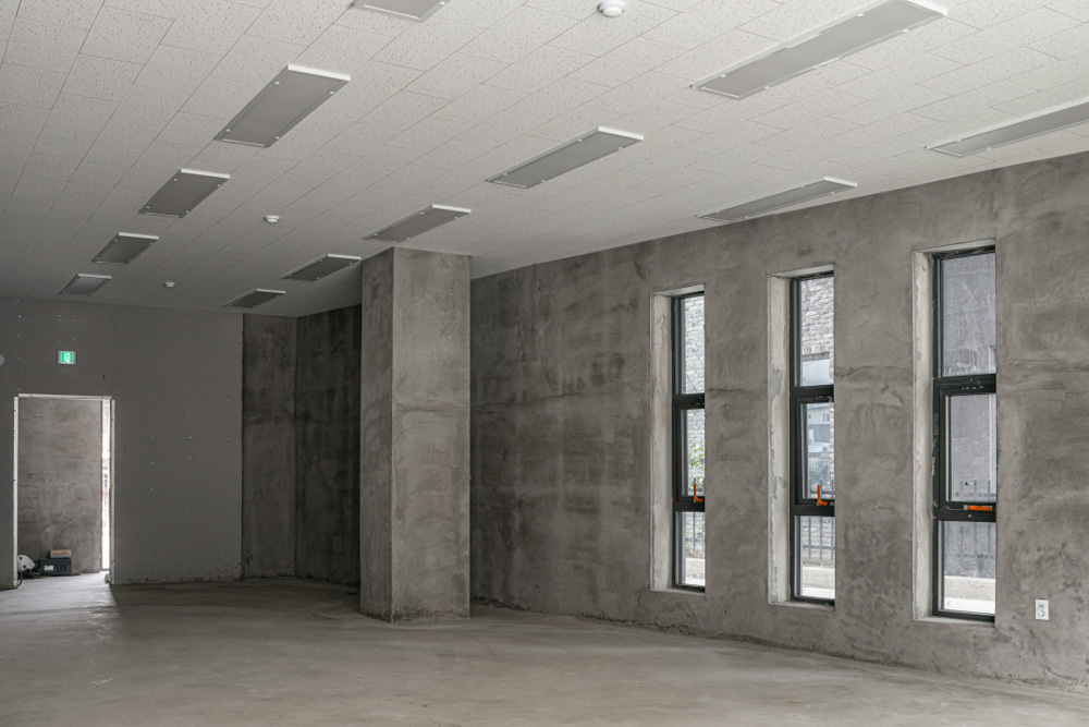 The elevation was designed so that sunlight and lighting could be produced in various ways between the brick walls that were stacked in space, giving the three-dimensional effect of the building that was stacked by turning bricks for each layer. In particular, various types of terraces on each floor create contact points with the outside in the shopping district, and the feeling of openness that is lacking in the rental shopping district is complemented by the terrace, changing to a monotonous space.