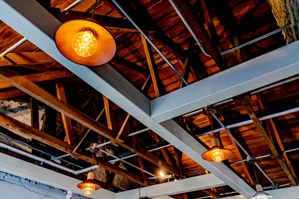 The interior finishing was done to keep the existing members as much as possible. The wooden trusses and roof, which are the characteristics of wooden buildings, are kept as much as possible to feel the original members by repairing and reinforcing only the parts that have deteriorated over the past 70 years.
