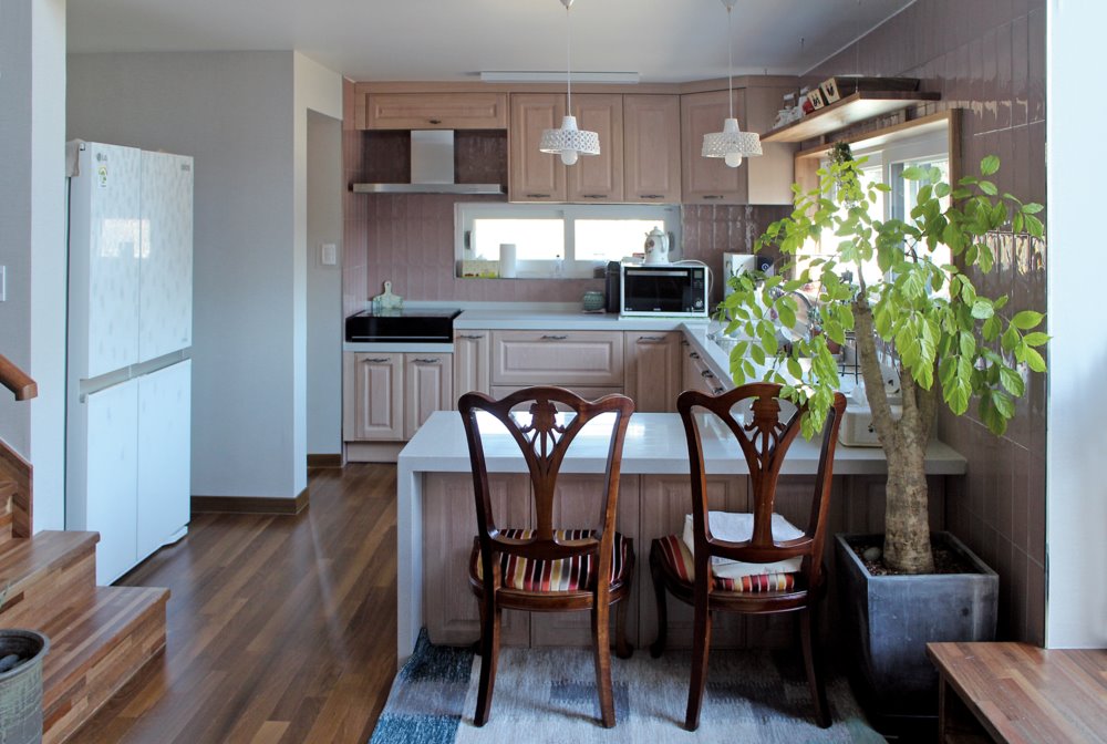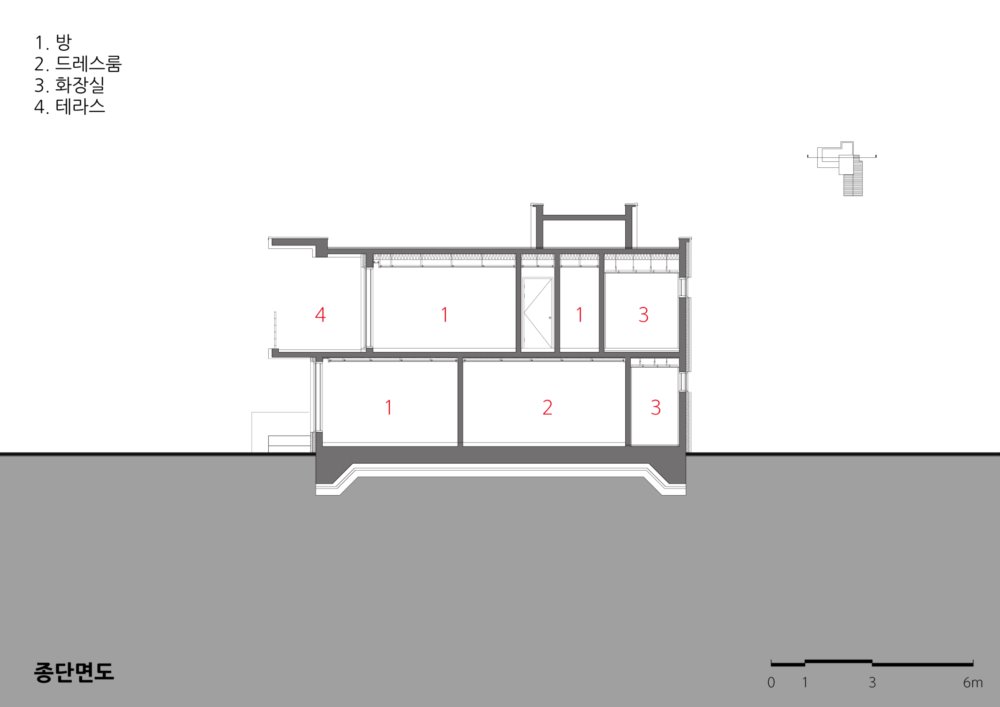 For the living room, the second-floor family room, and the kitchen's upper loft interactive spaces, the living room is the medium of communication, rather the main space is located for the second-floor family room and the unique attic. In addition, the attic was constructed as a charming space rather than a mere attic through openness and opening toward the outside in a private balcony to meet the self-existent space of Level(spaced) that is lifted.