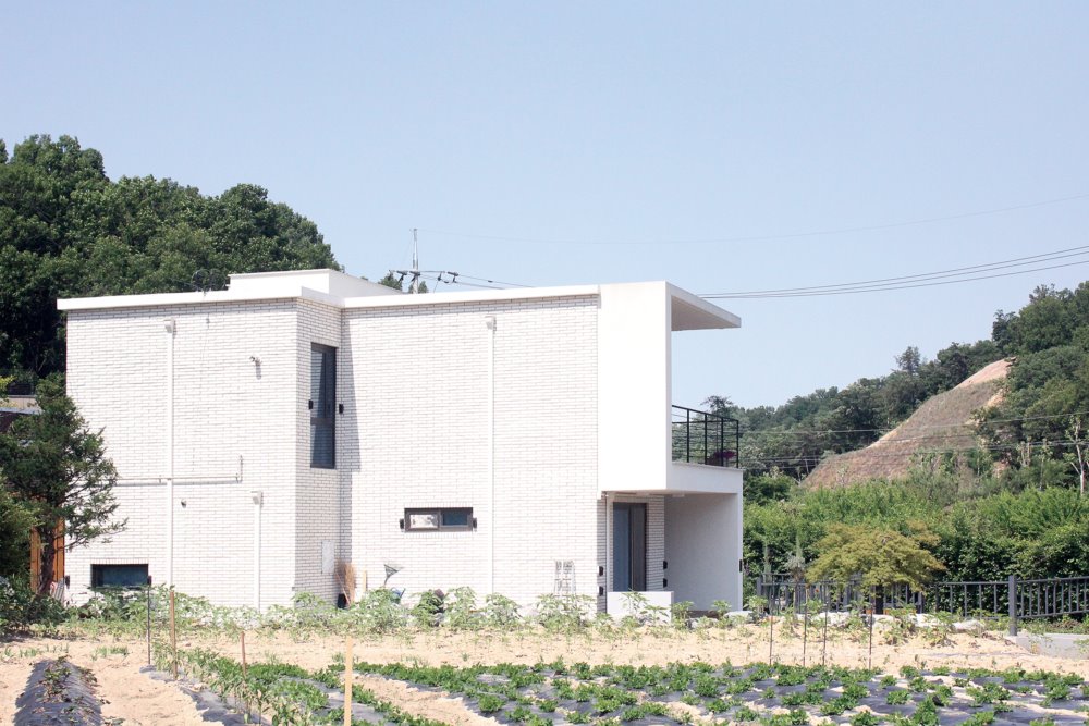 대지의 독특한 형태를 활용한 ‘ㄱ’자 형태의 매스와 그것에 안긴 형태의 정원을 배치하면서 거실과 안방에서의 조망을 확보하였다. 서측에는 안방과 방, 드레스룸, 욕실 등 정적인 공간, 동측에는 거실과 주방과 같은 동적인 공간을 배치하고 현관과 계단을 통해 각각의 영역을 분리시키고 각 방의 프라이버시를 확보하면서 거실과 주방이 함께 최대한정원을 바라볼 수 있도록 했다.